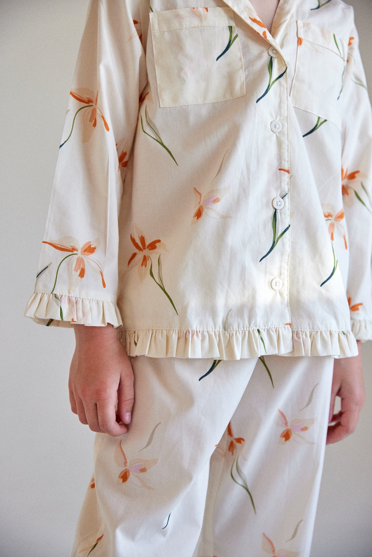 Enjoy a matching moment with your mini in our little girls Felicity Frill Pyjama Set. Soft, cosy and cute - it makes a beautiful gift idea.