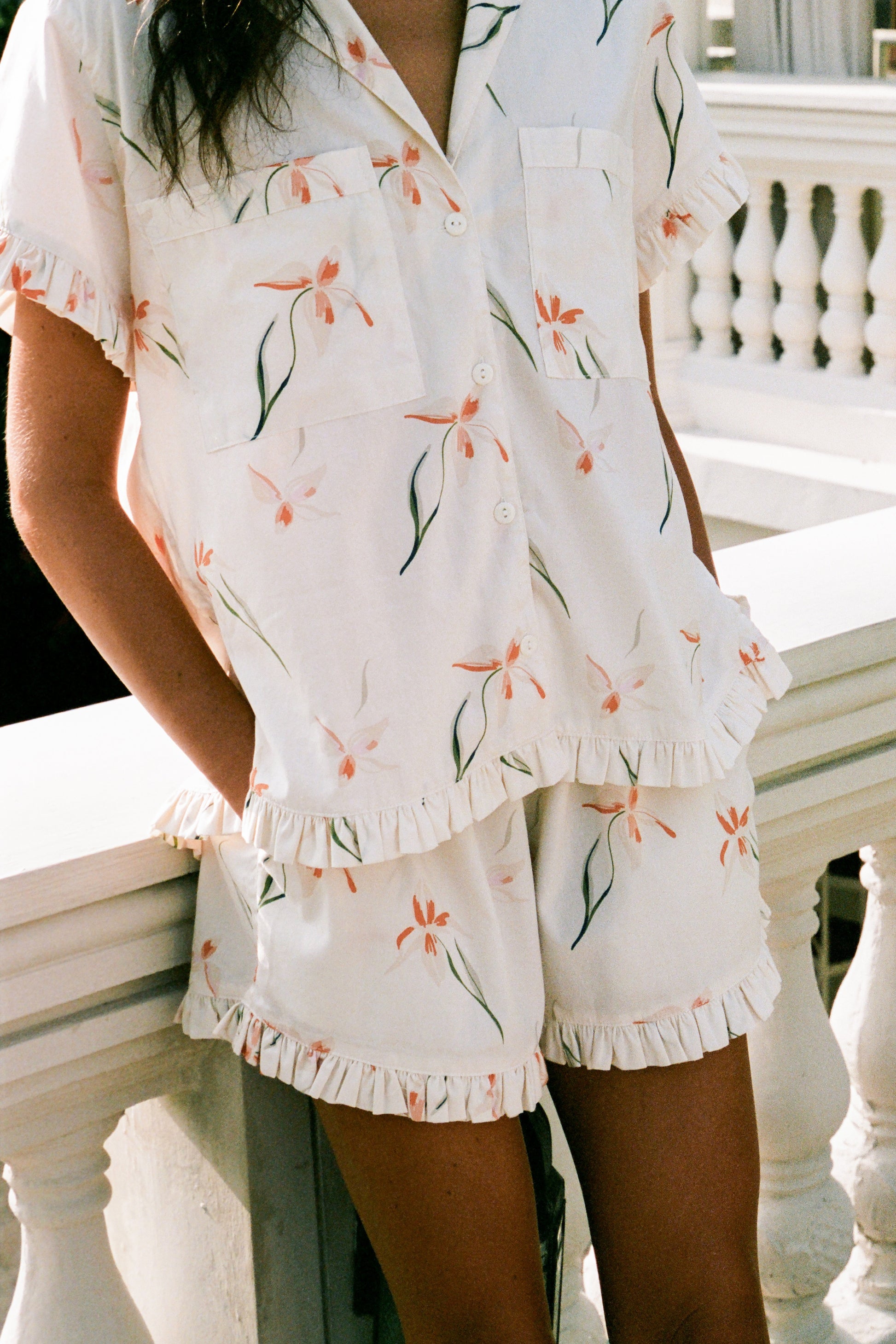 A charming blend of charm and comfort, the Felicity Frill Pyjama Set offers a playful silhouette designed for the modern romantic. Crafted from a premium Cotton Modal blend, it delivers breathable, feather-light comfort. It's cotton - elevated.