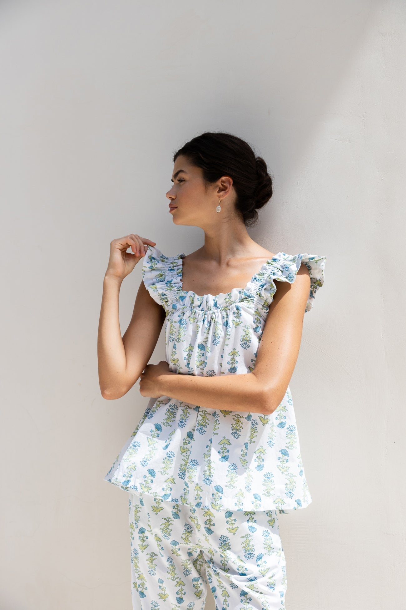 Nicolette Sleep Set - Pants - Lotus Flower - Blue