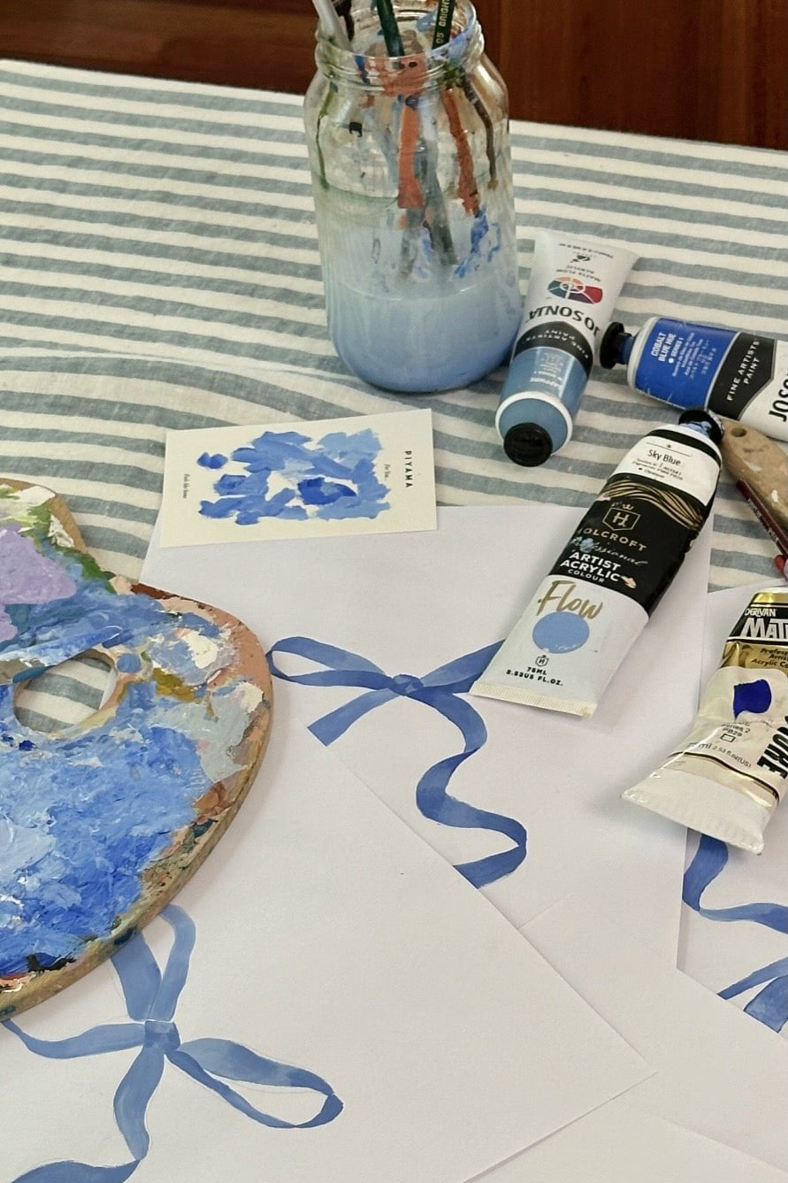Hand painted by inspiring local creative @jasminedowling, Bow embodies Something Blue, ideal for those unforgettable wedding moments. Printed on our signature soft 100% Rayon, it's a dream to sleep in.