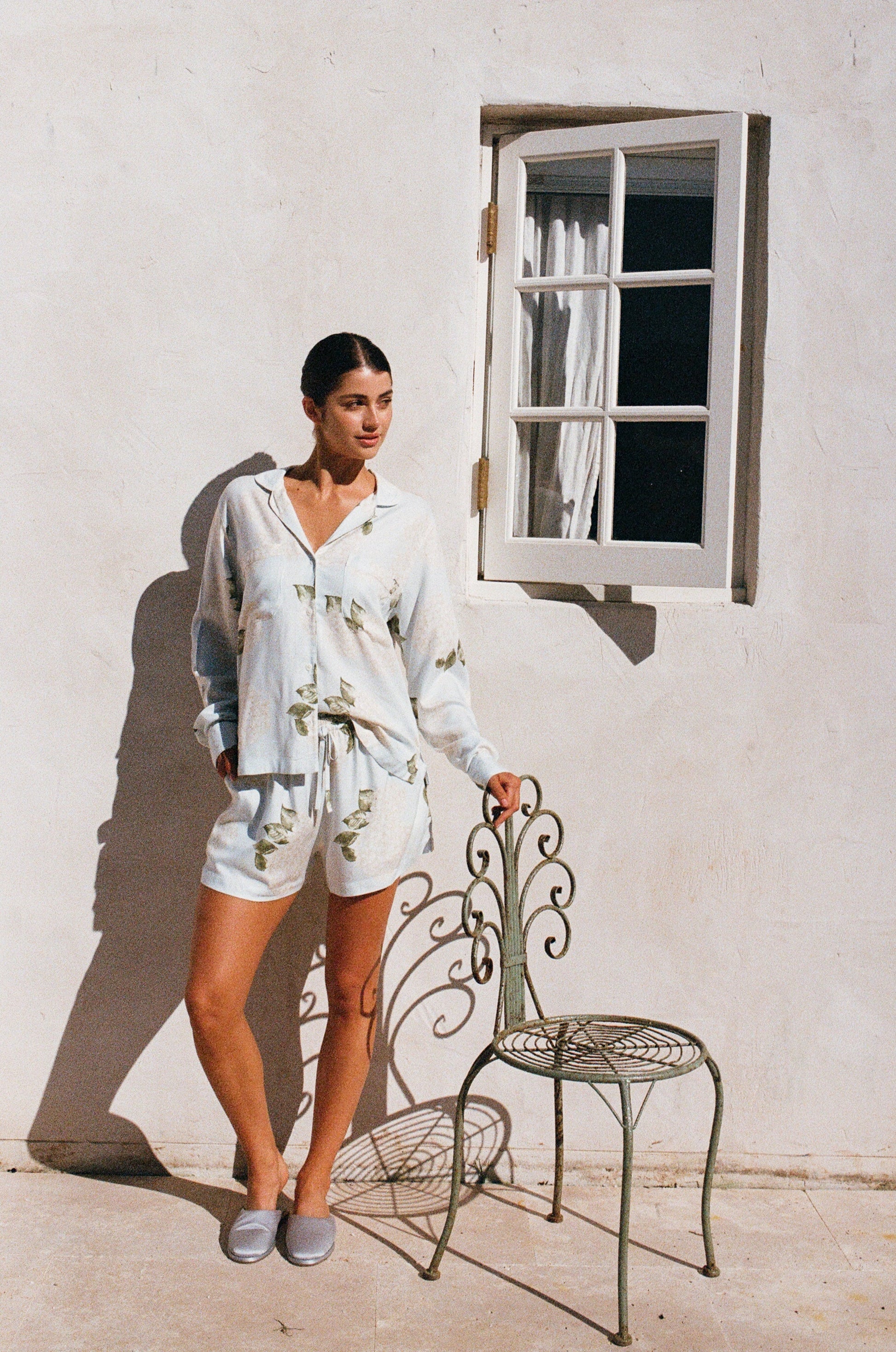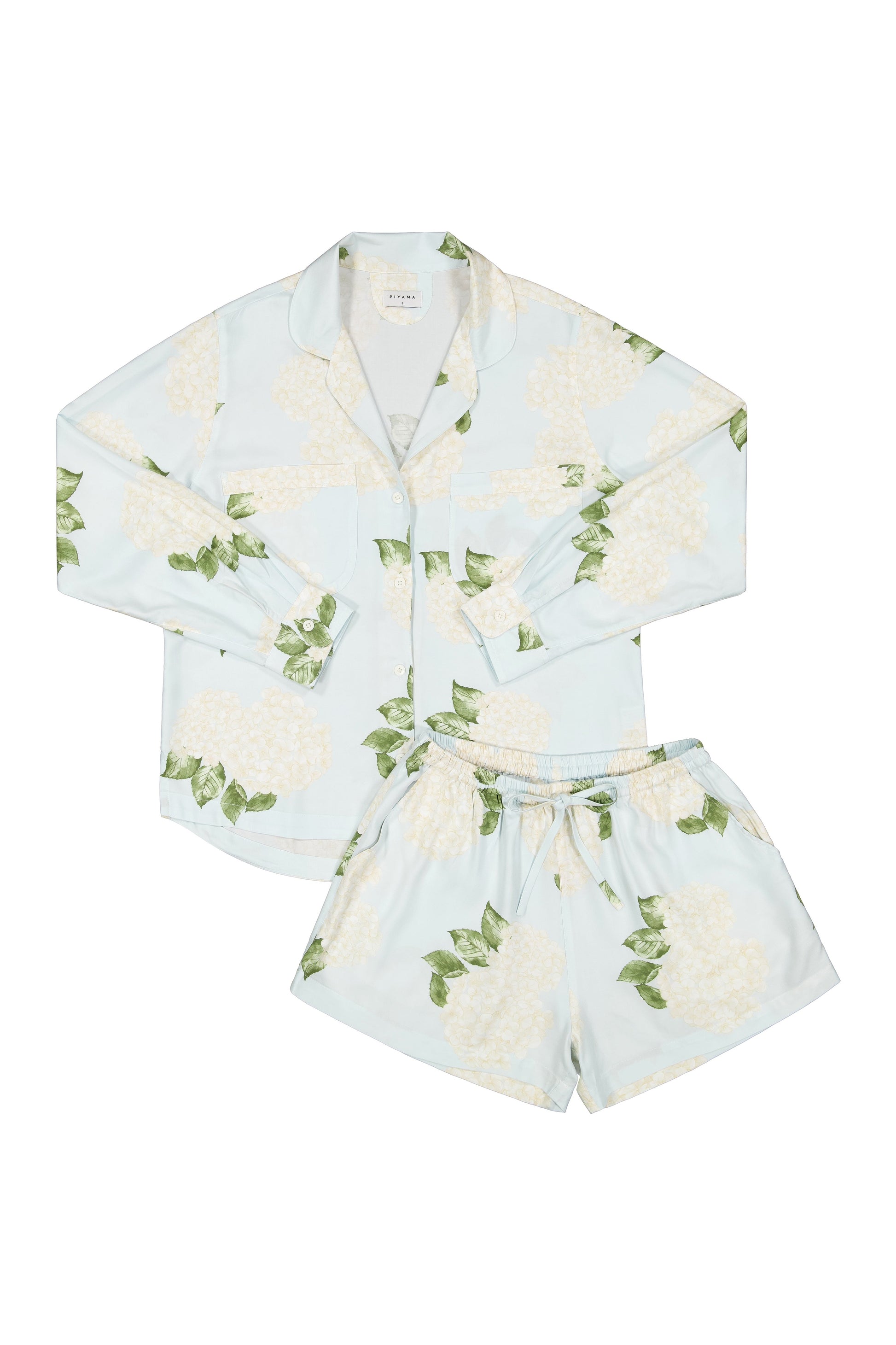 The Abigail Pyjama Set is a timeless nod to traditional sleepwear, reimagined for the modern woman. Featuring our delicate new Hydrangea Heirloom on ECOVERO™ , this breathable fabric feels irresistibly soft, while being a more considered choice for the environment.