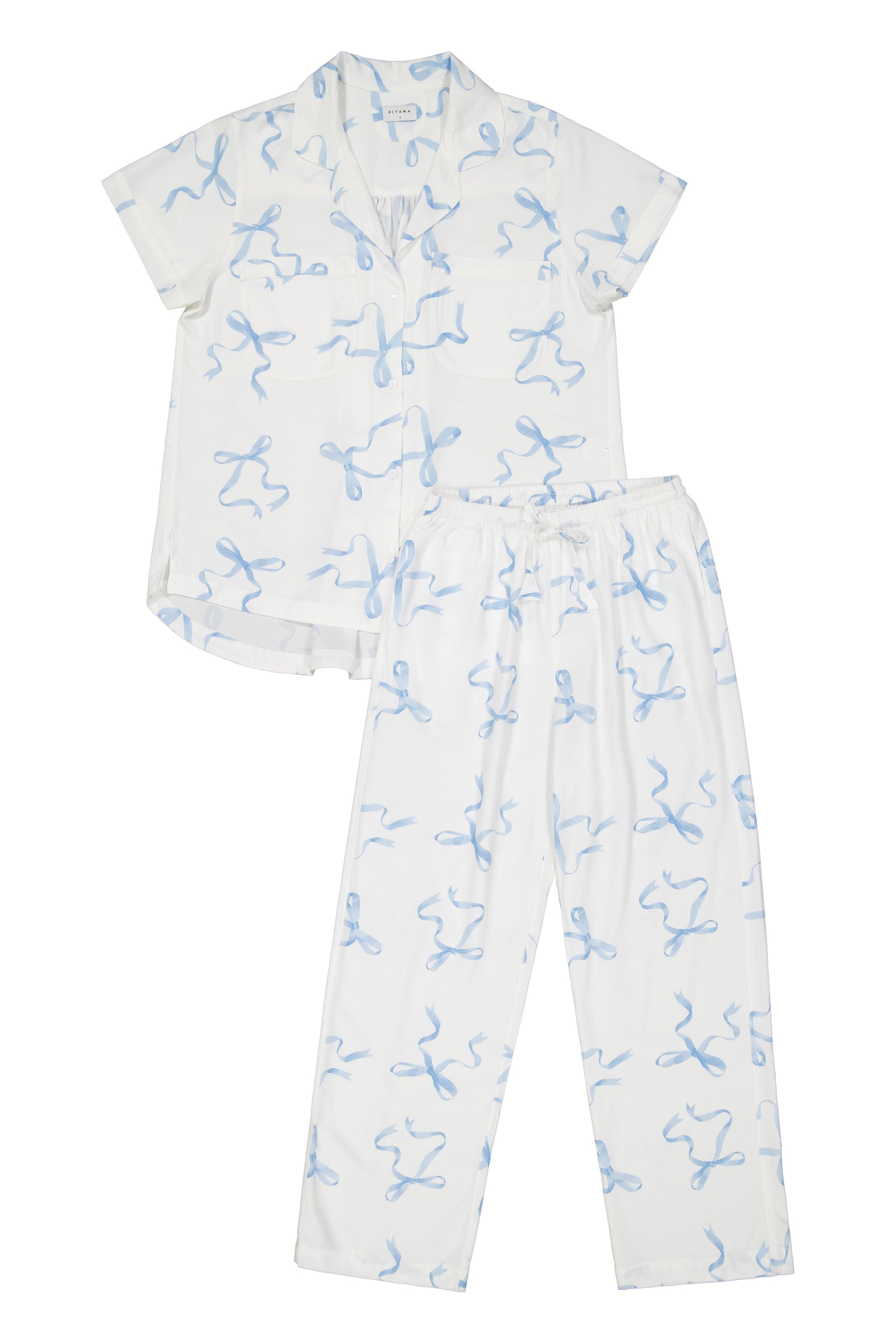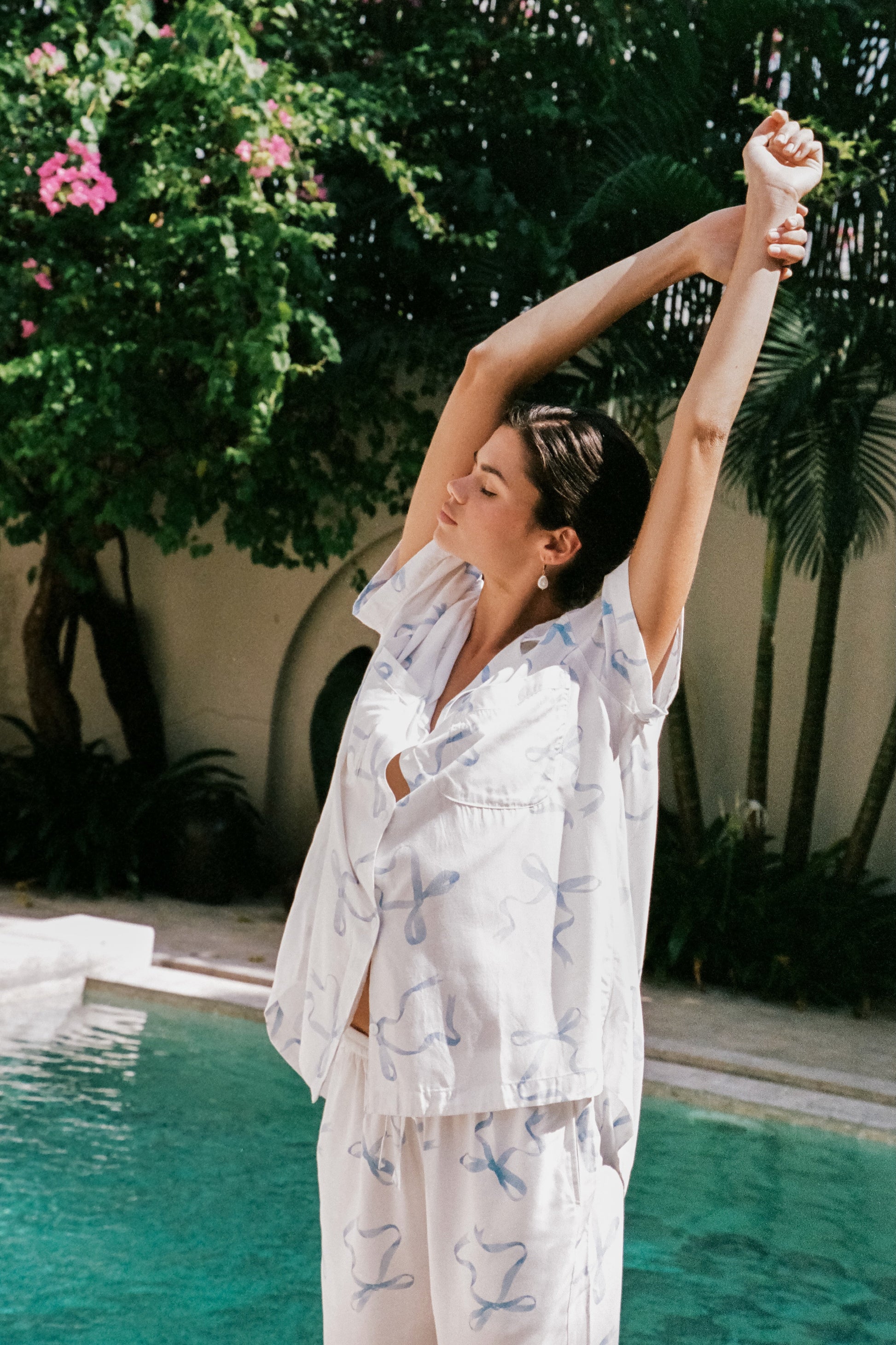 Hand-painted by inspiring local artist @jasminedowling, Bow bries a fresh take on  Something Blue - perfect for those unforgettable wedding moments. Crafted from our signature soft 100% rayon, it's a dream to sleep in. Pair with our other Bow styles.
