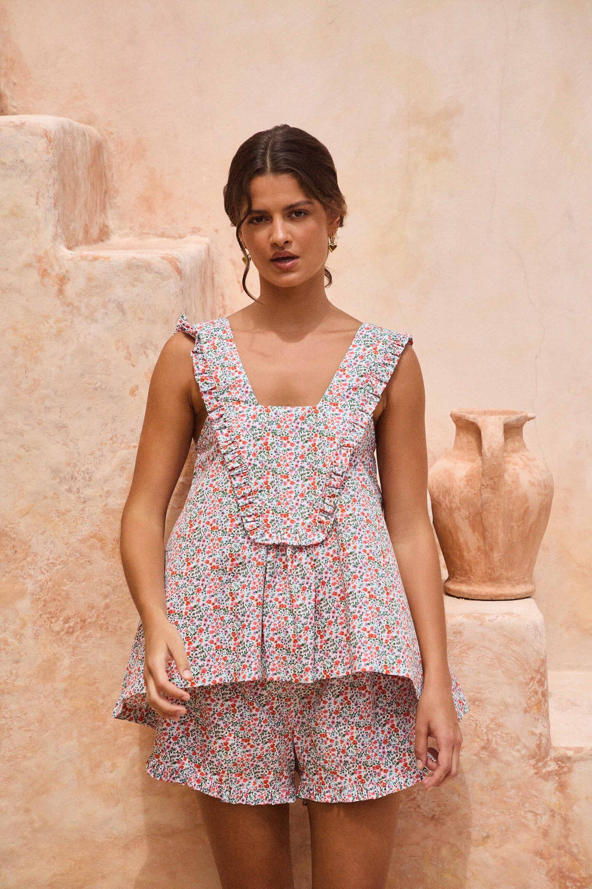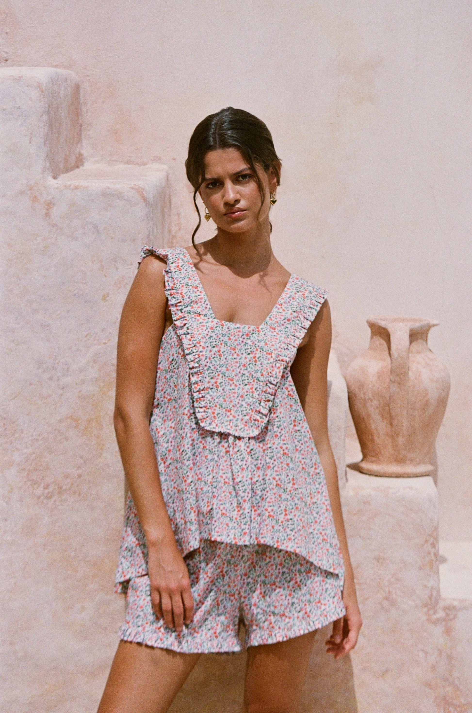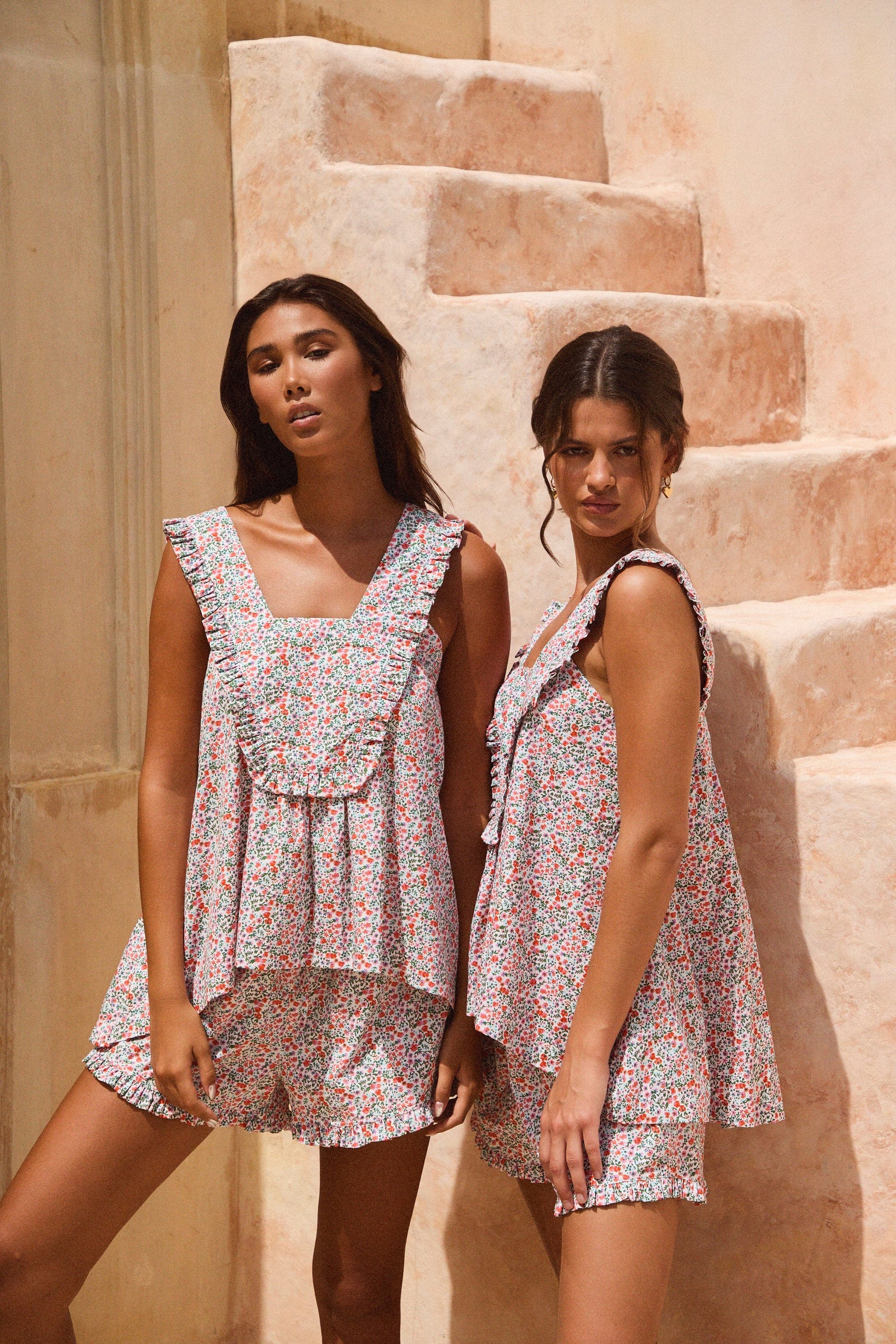The Elsie Sleep Set has been one of our popular shapes, this time cut in a ditsy floral on our buttery soft 100% cotton. Dress up or down for resort-style comfort.