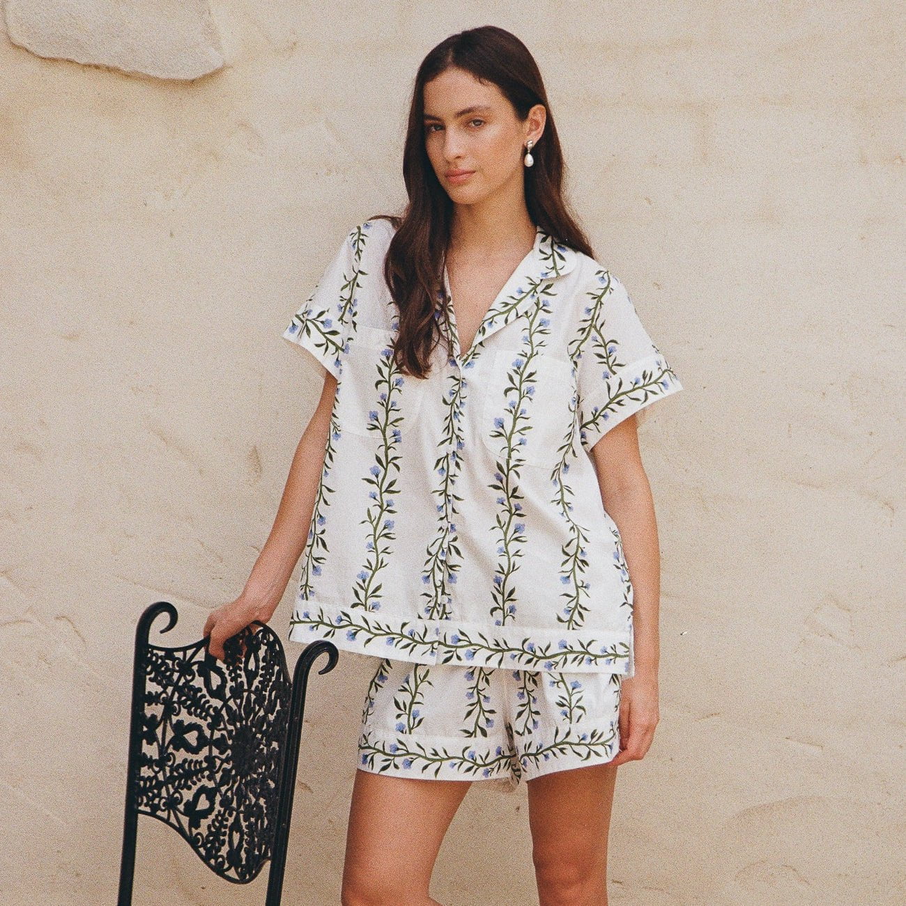 Our exciting new Cotton addition ‘Vine’ is an elegant blend of charm and comfort. Cut here in the Emily Sleep Set, a modern yet feminine button-down ensemble. Print designed in collaboration with talented creative @emilyisabella