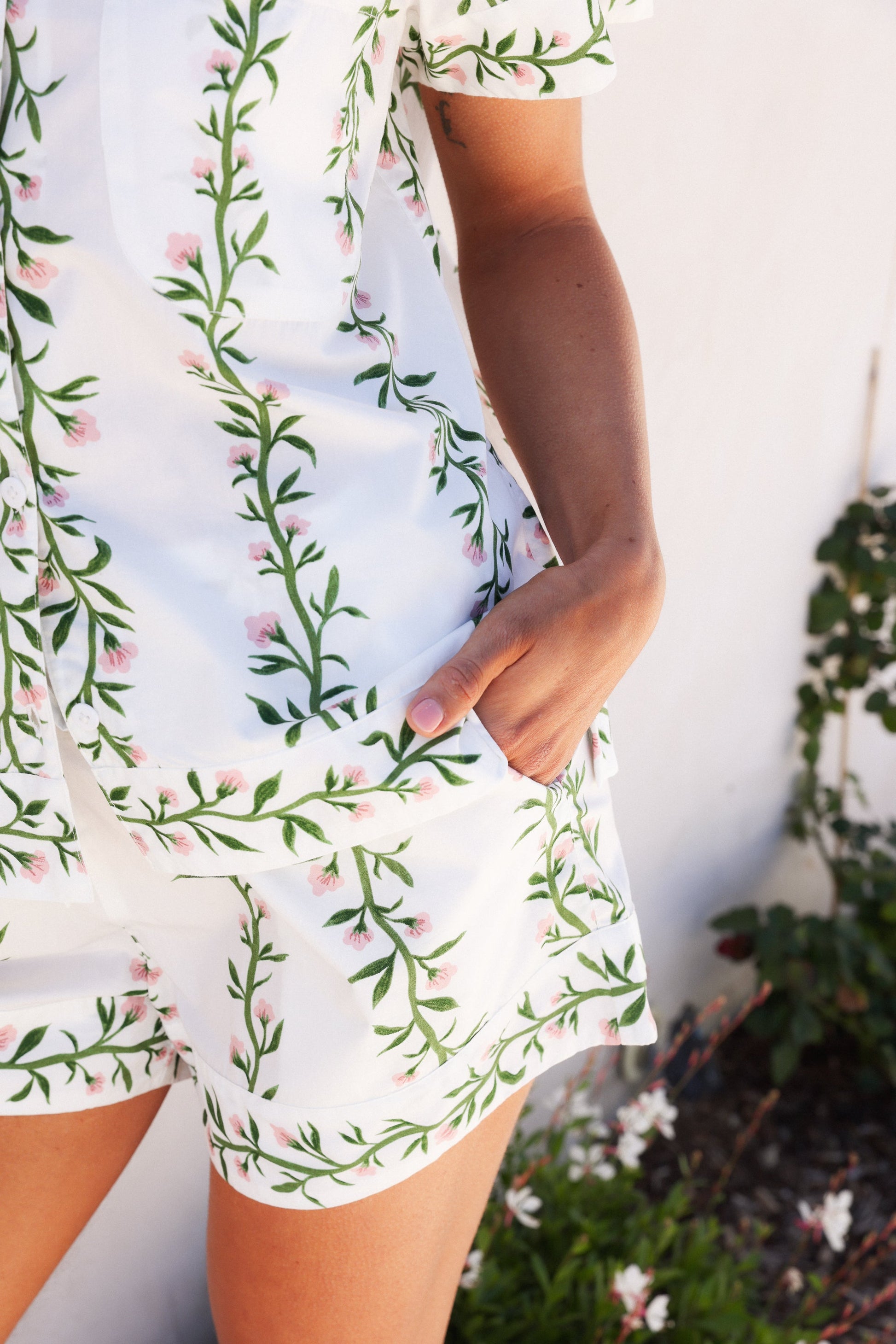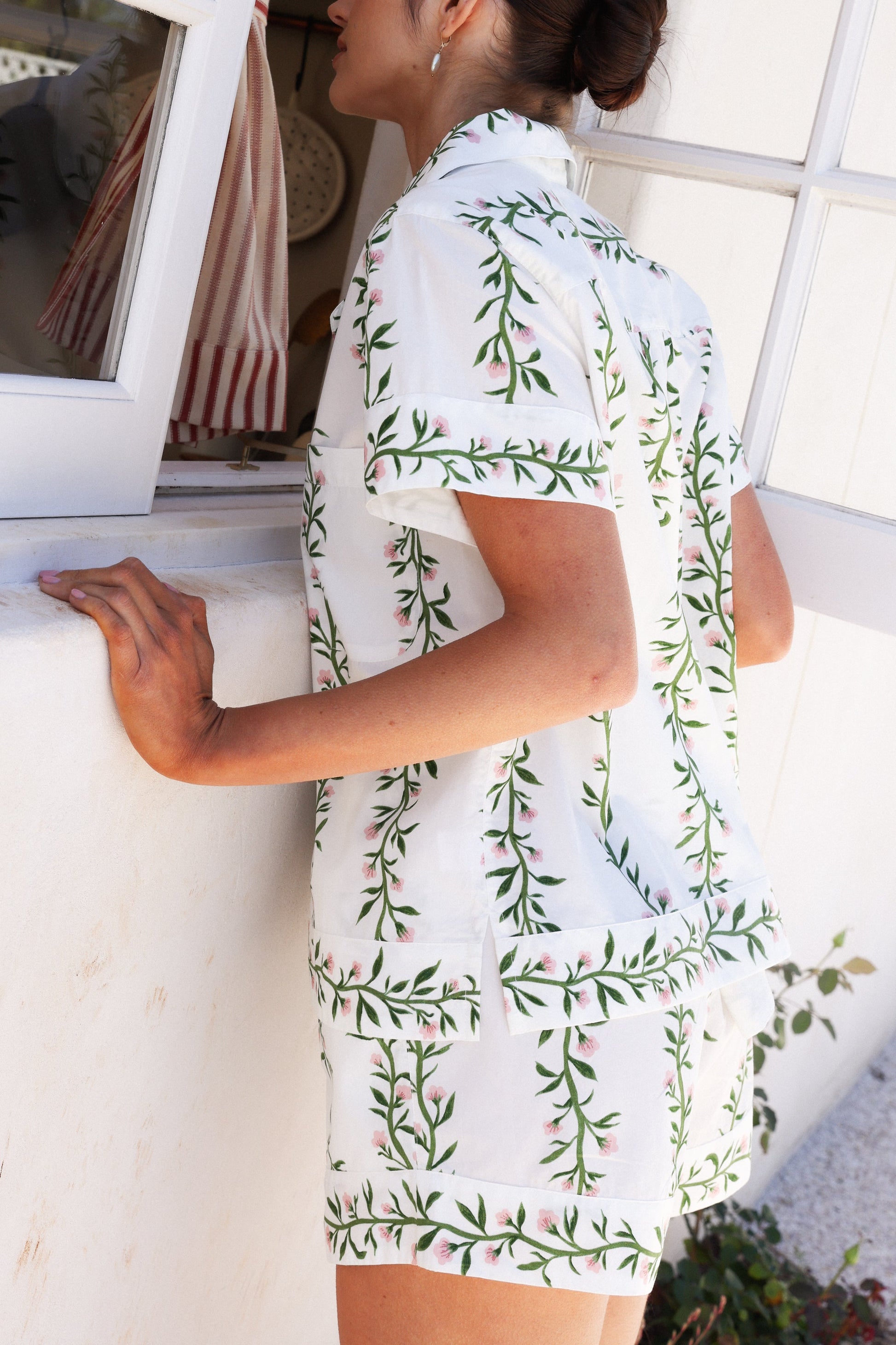 Say hello to our newest shade of Vine - a soft pink hue. Illustrated by @emilyisabella, this watercolour vine motif brings intricate detail to this feminine pyjama set.
