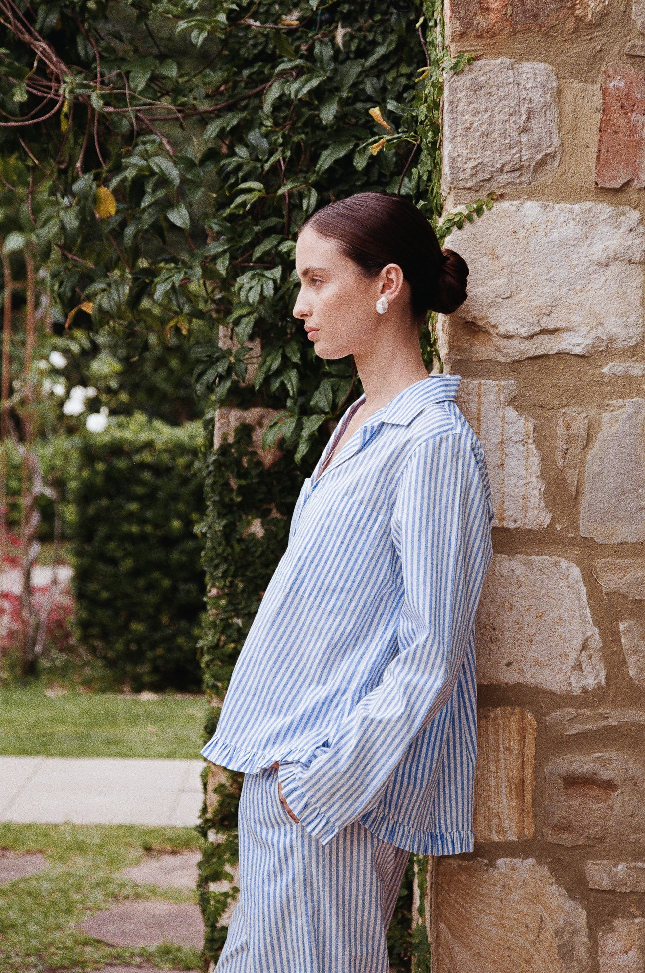 A charming blend of charm and comfort, the Felicity Frill Pyjama Set offers a playful silhouette designed for the modern romantic. Timeless in a classic pinstripe.
