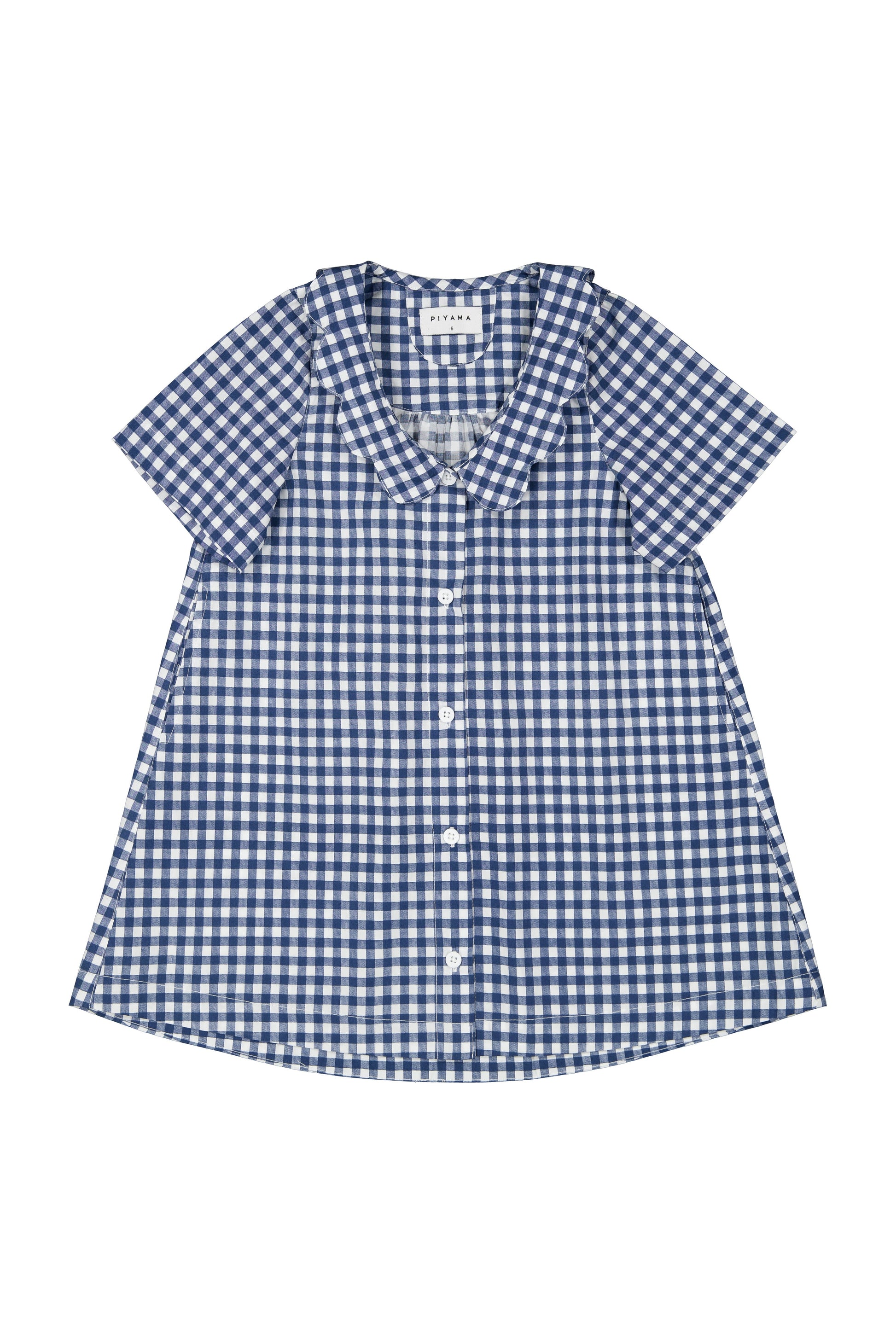 Girls Penelope Lounge Dress - Gingham Navy Blue
