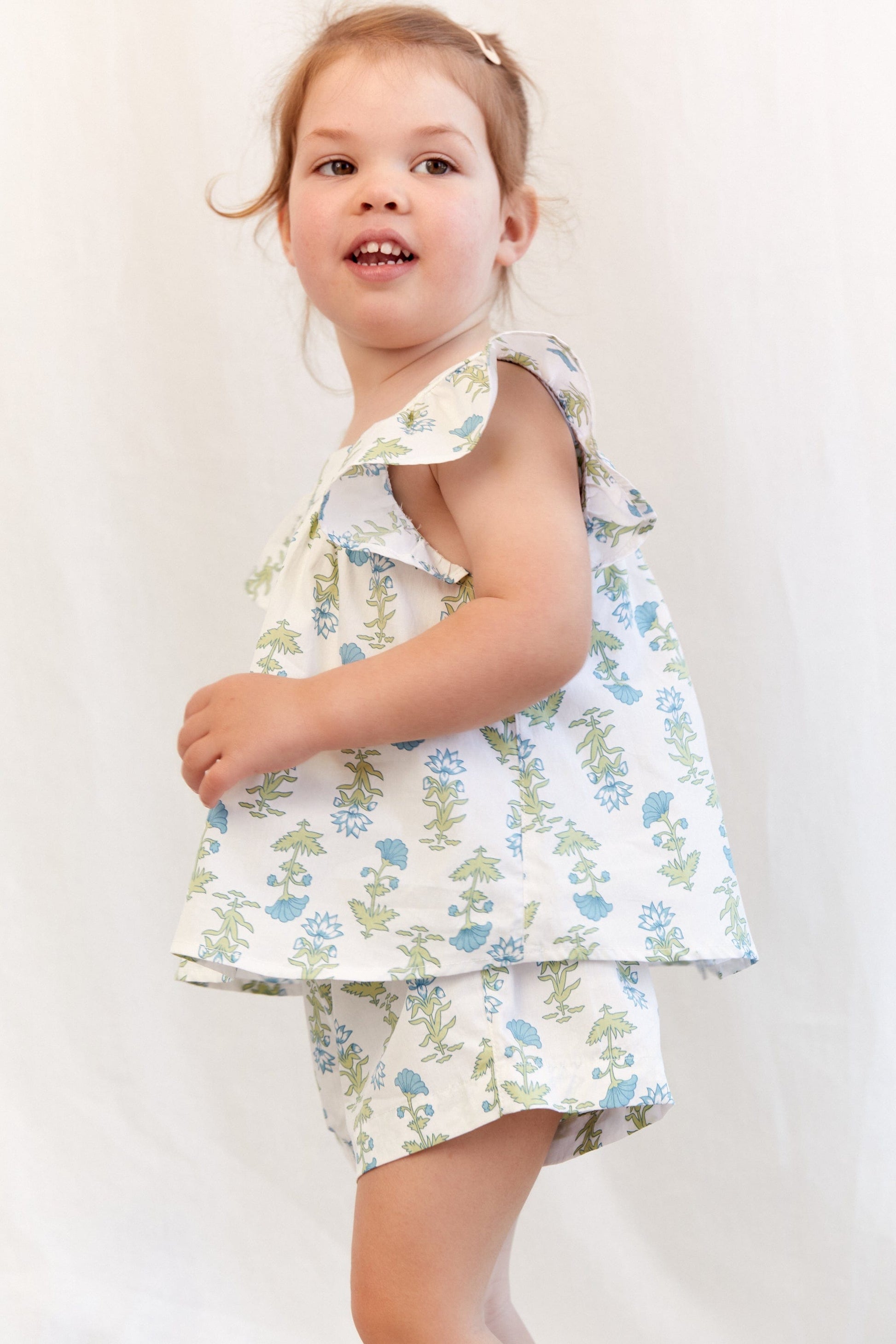 The Harriet Set makes a special outfit for the mini in your life. Paid with our other Lotus Flower - Blue styles for a matching moment.