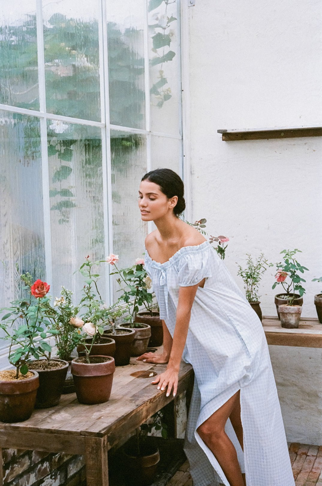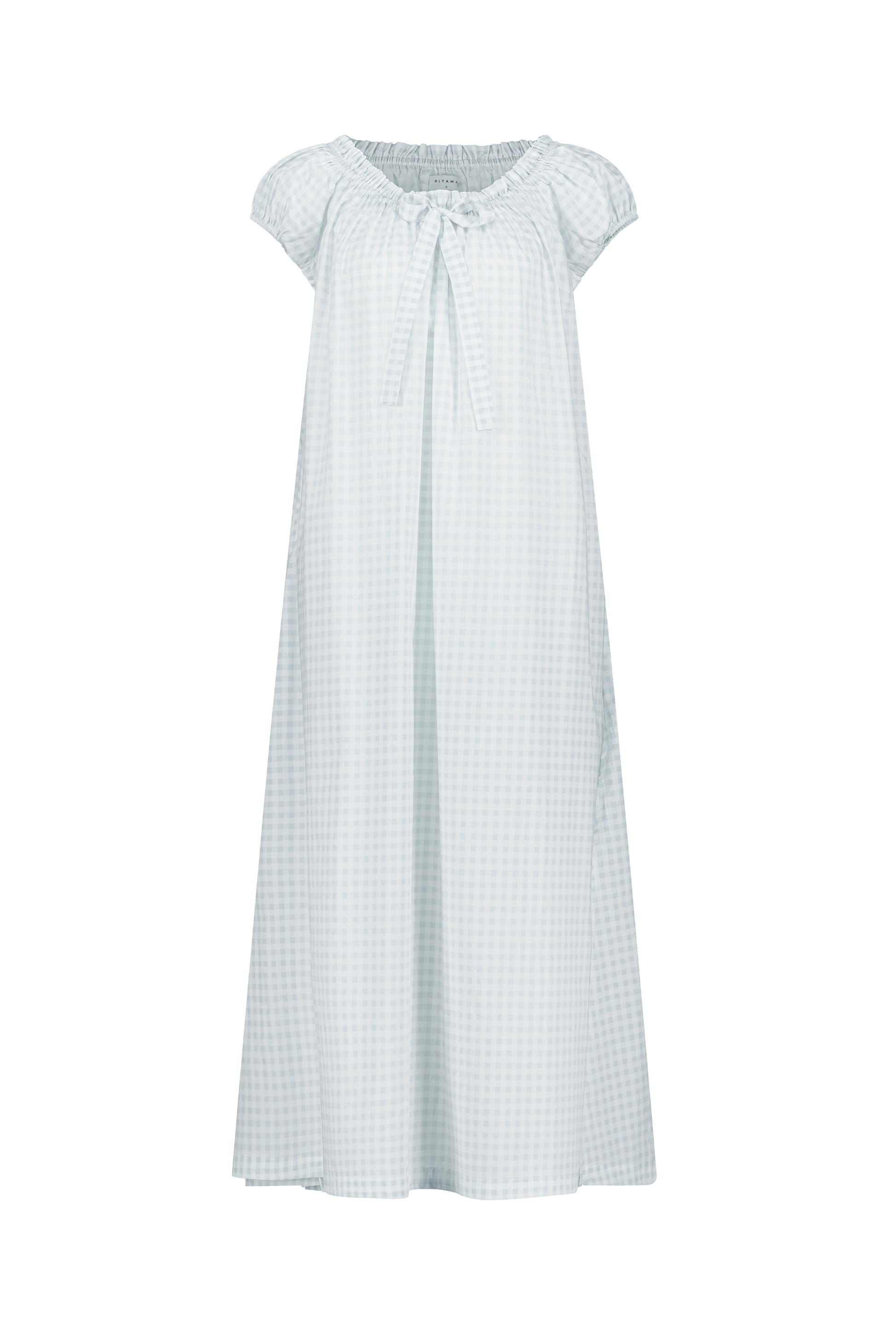 Lily Lounge Dress - Long - Gingham Pale Blue