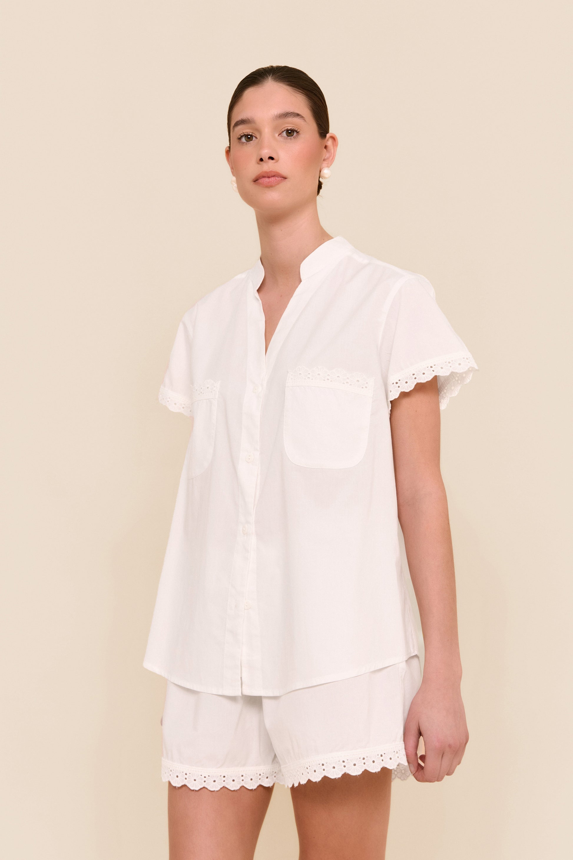Maggie Pyjama Set - Cotton Modal - Off White + Daisy Trim