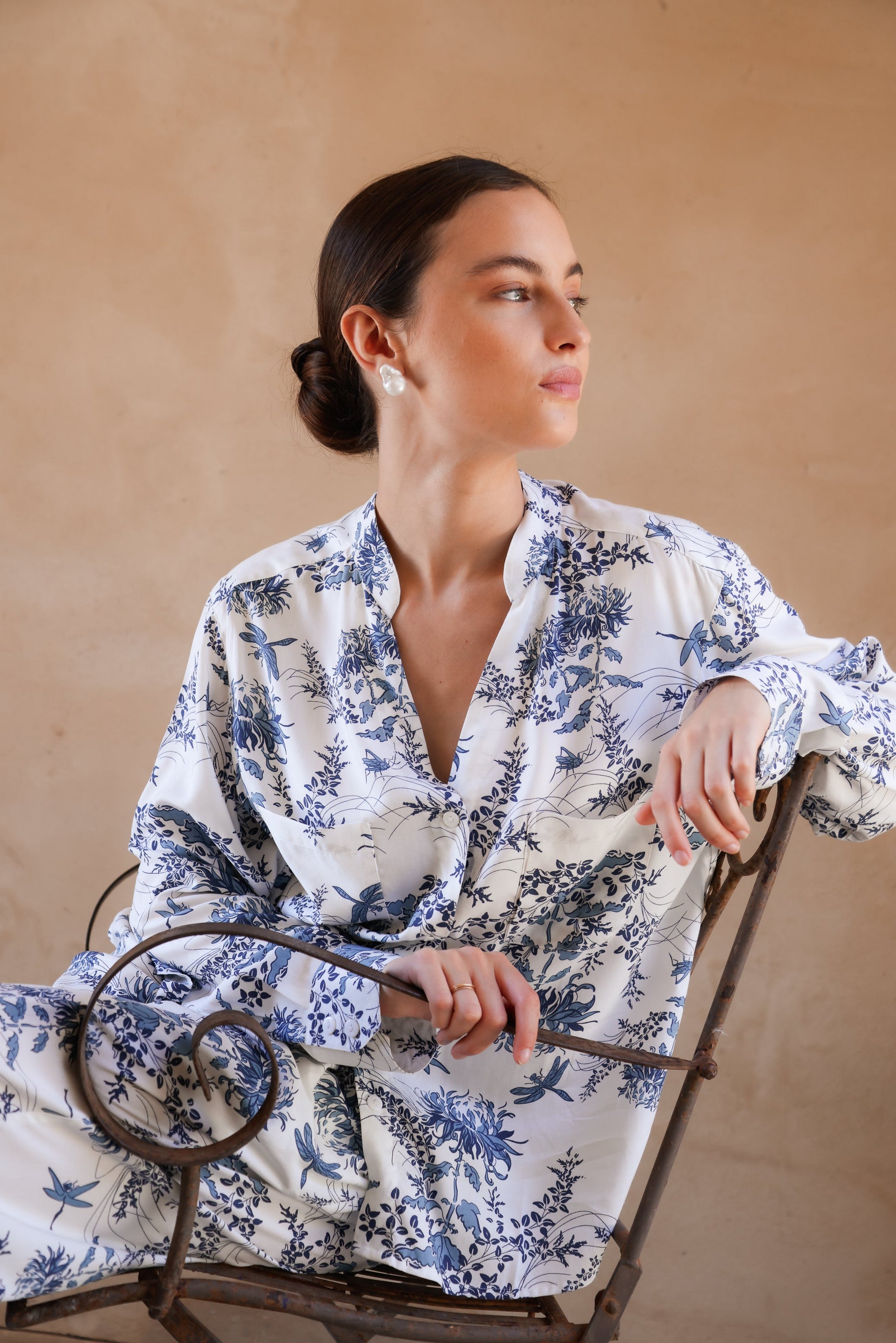 Maggie Pyjama Set - Long - Summer Toile - Aegean Blue