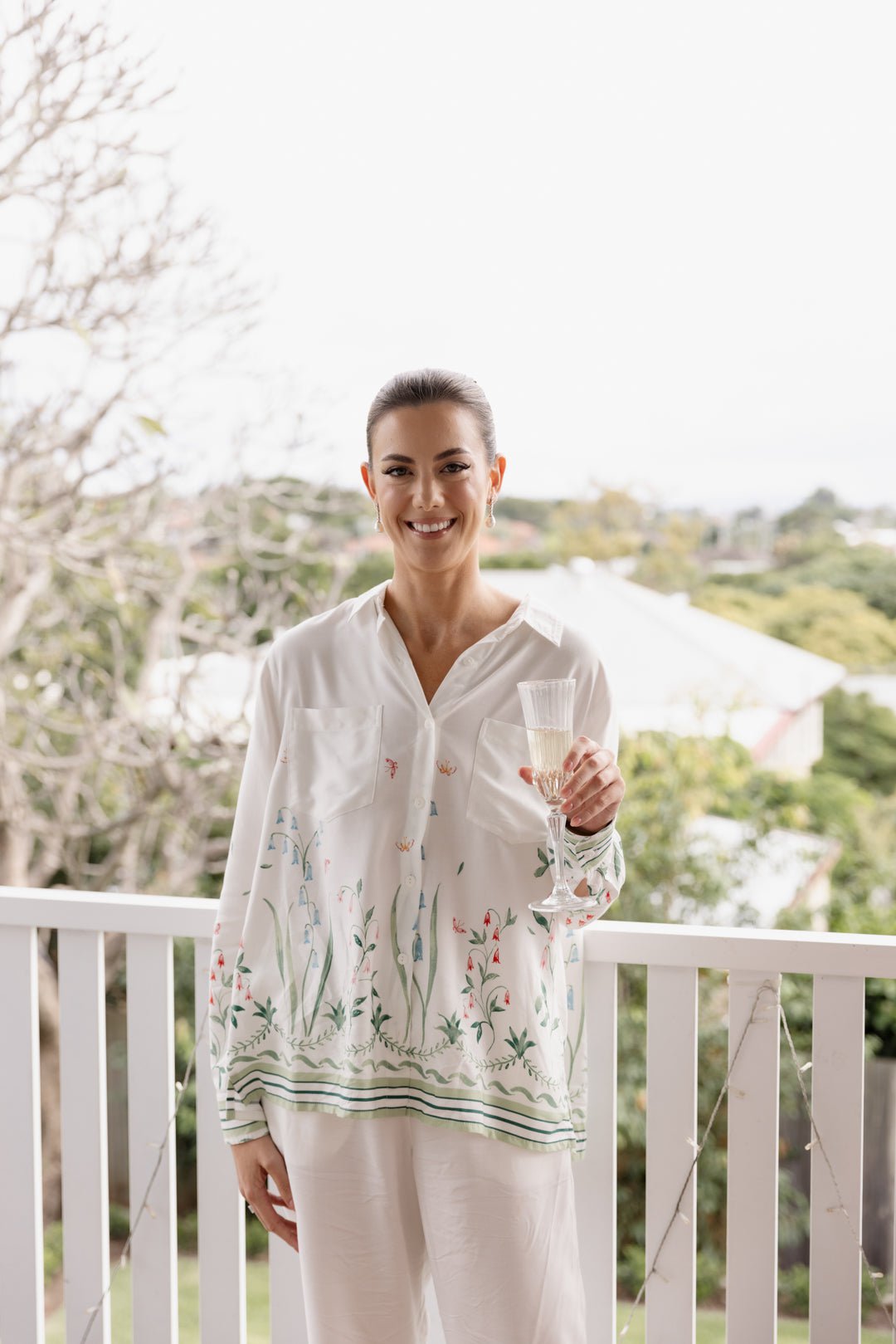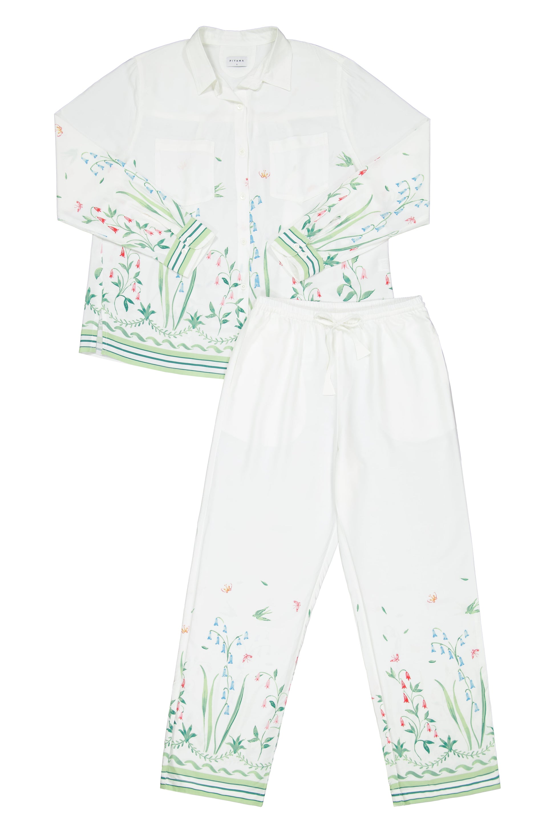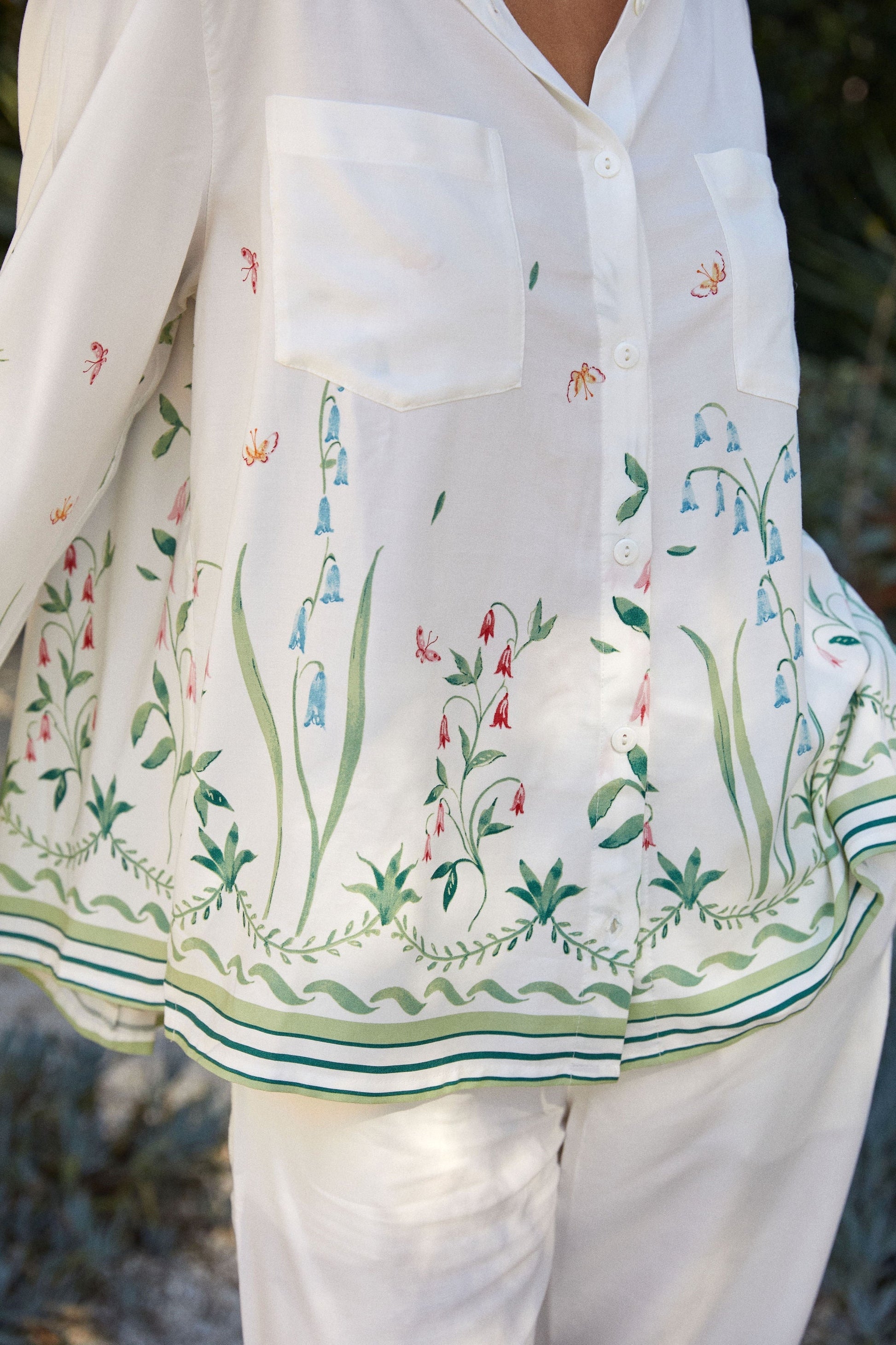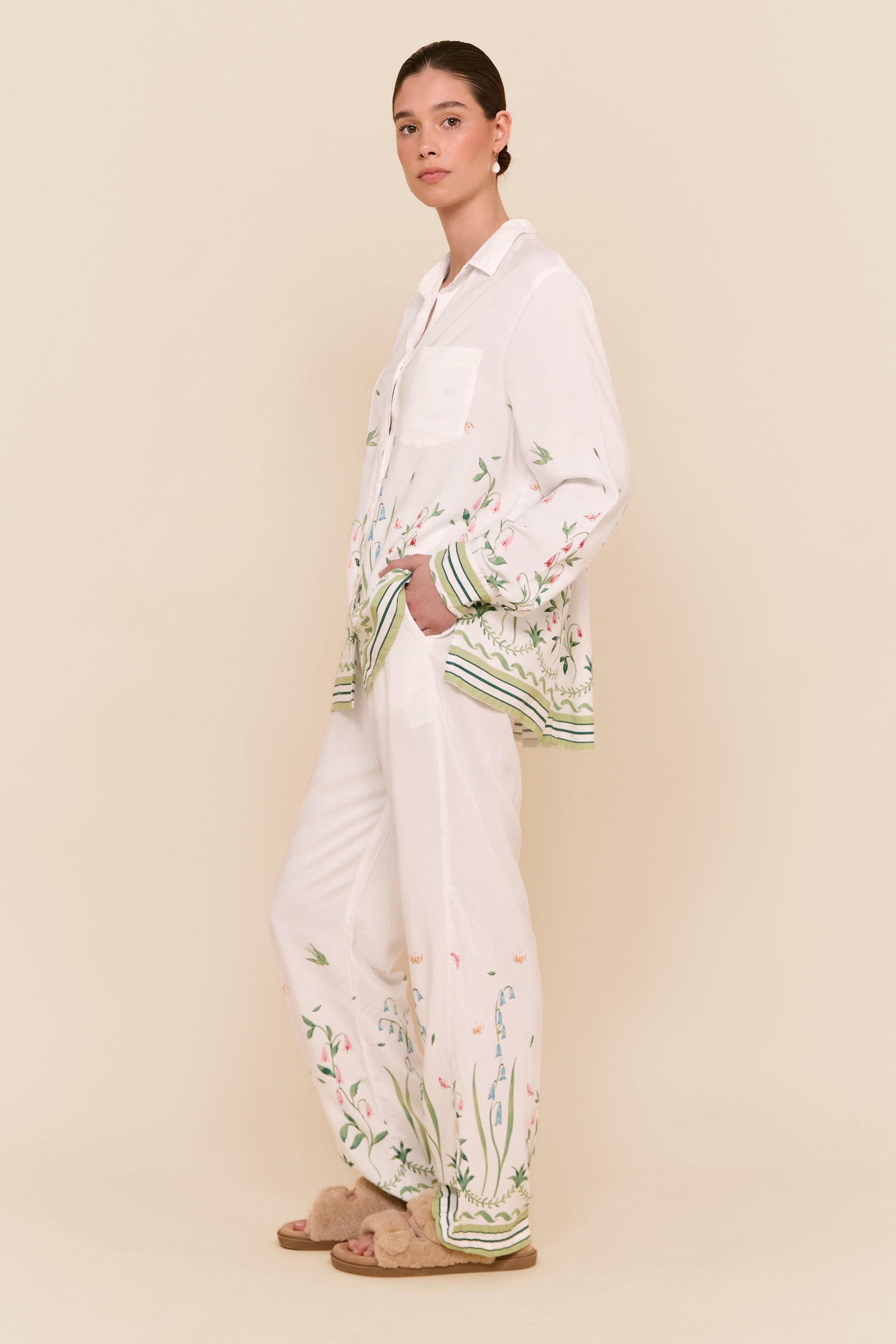 Designed exclusively in collaboration with Susannah Garrod, this extra special Marlon Pyjama Set is a standout. Susannah's hand-painted floral border print adds an ultra-feminine touch. The ivory base makes it a beautiful bridal option.