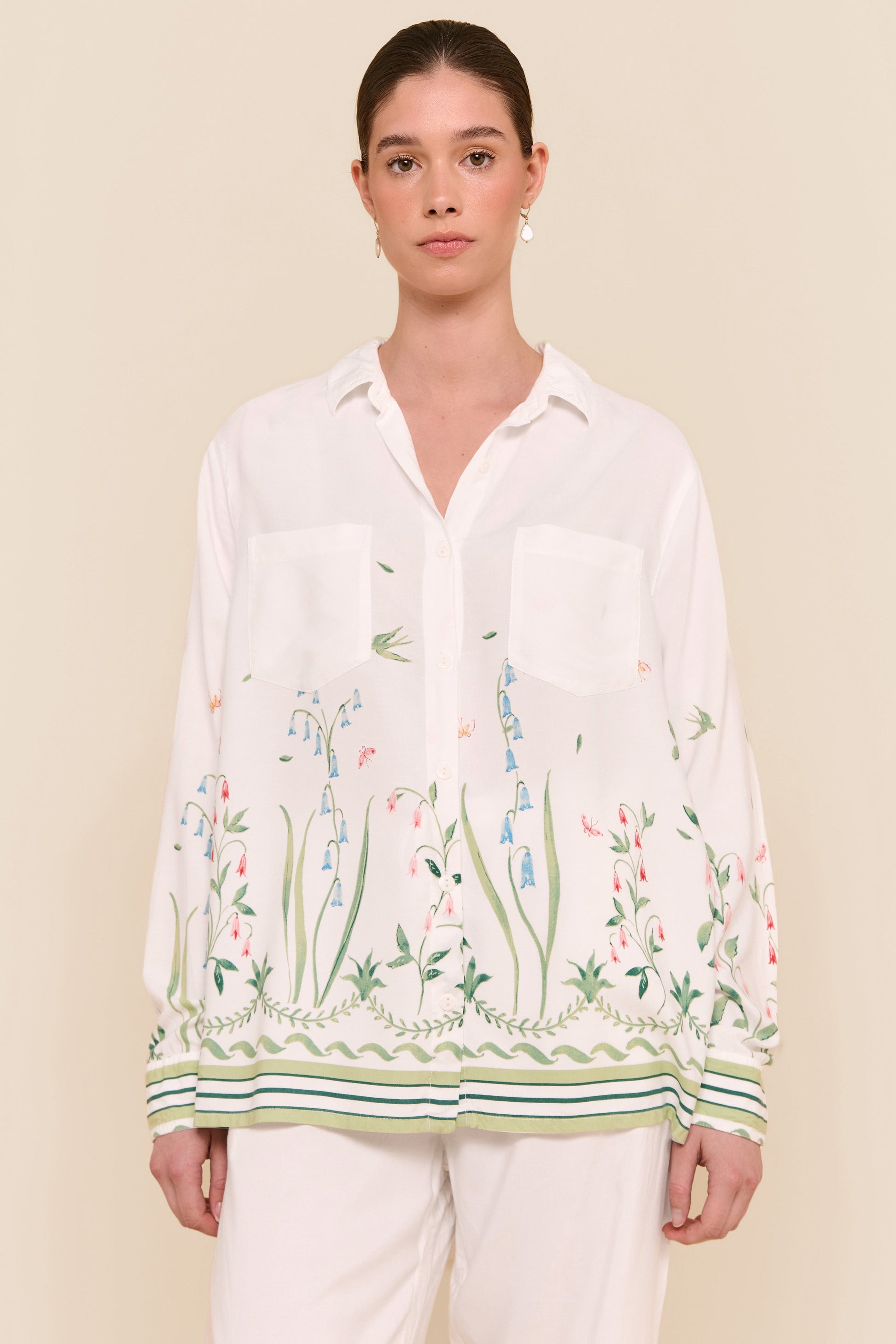 • Button-up boyfriend style shirt with pockets on bust