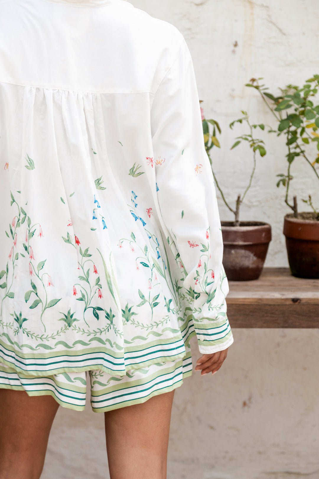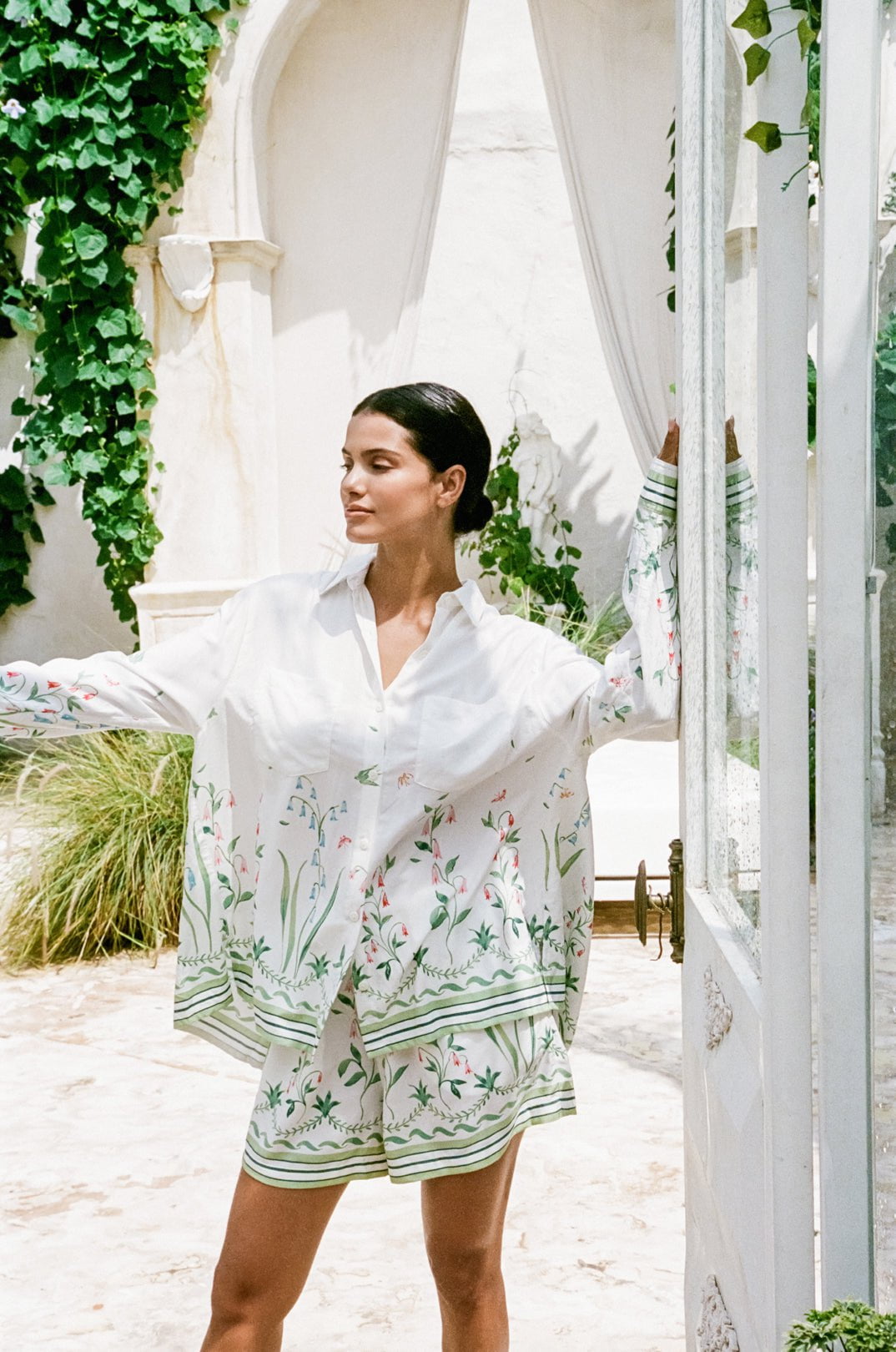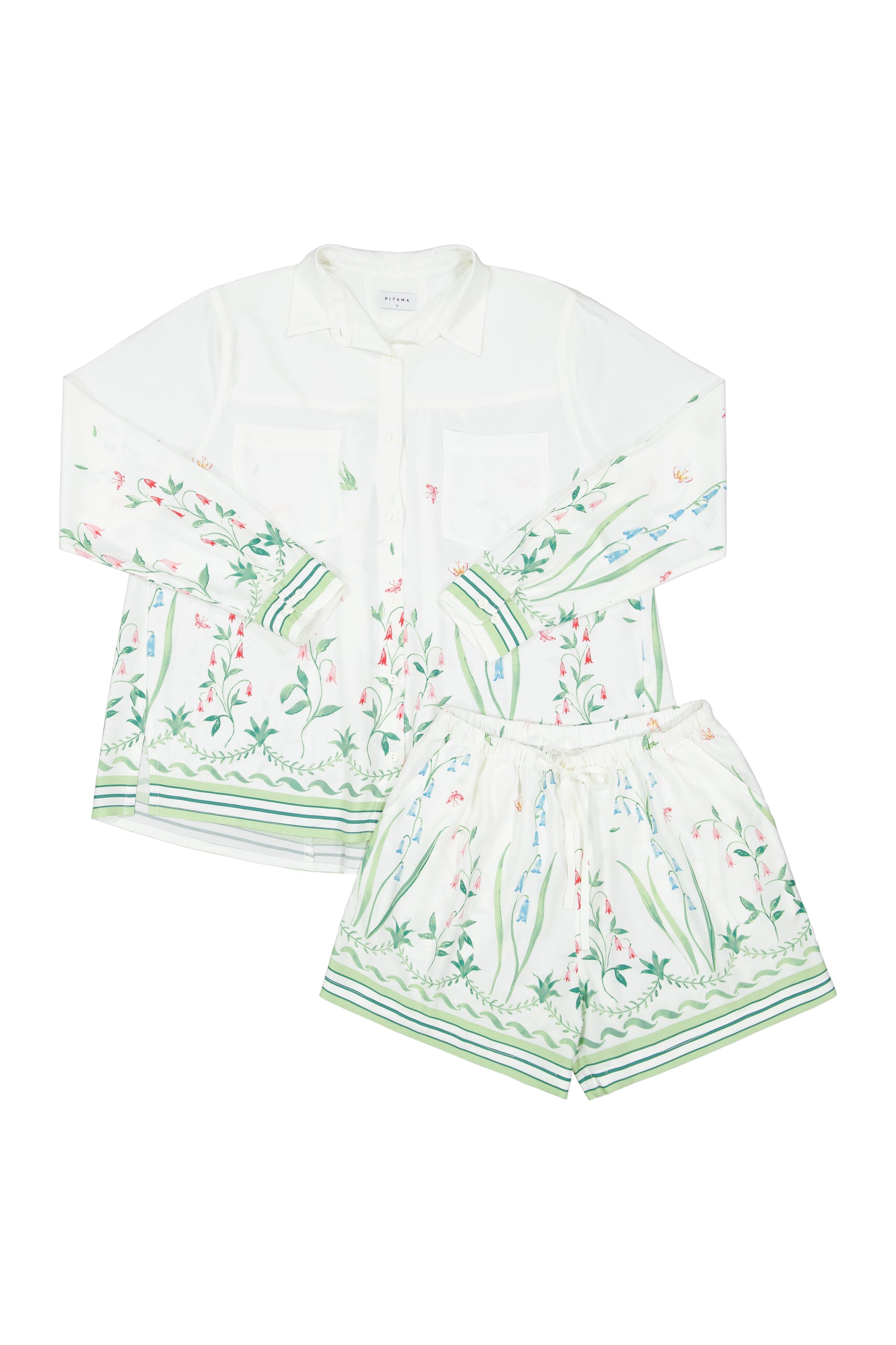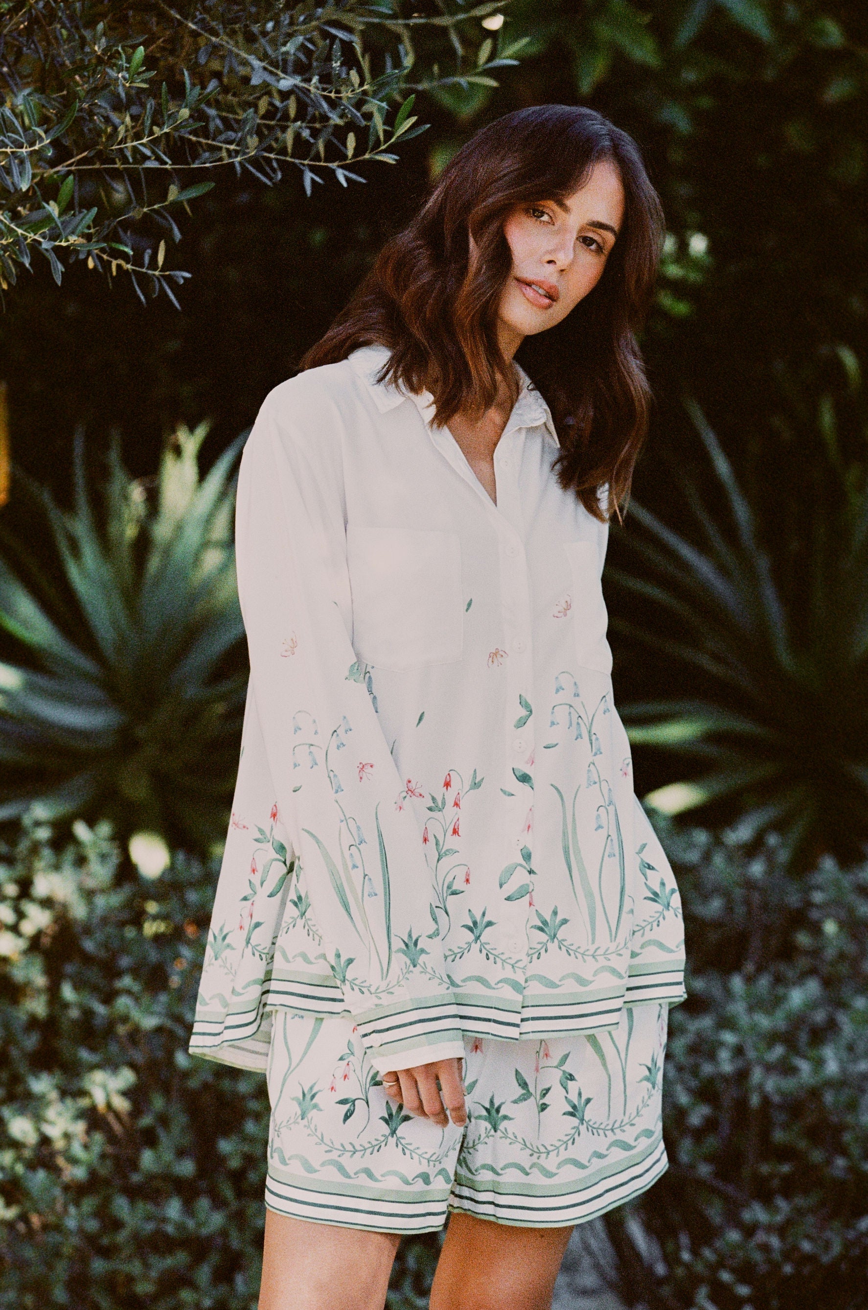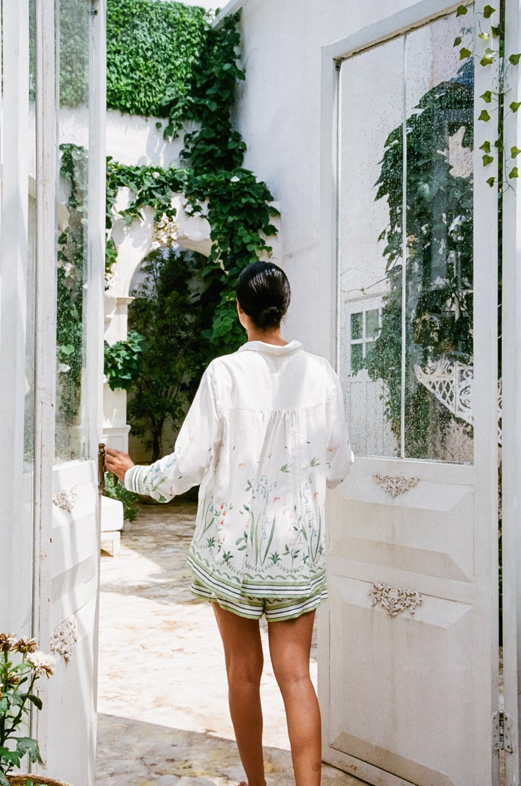 Designed exclusively in collaboration with Susannah Garrod, this extra special Marlon Pyjama Set is a standout. Susannah's hand-painted floral border print adds an ultra-feminine touch. The ivory base makes it a beautiful bridal option.