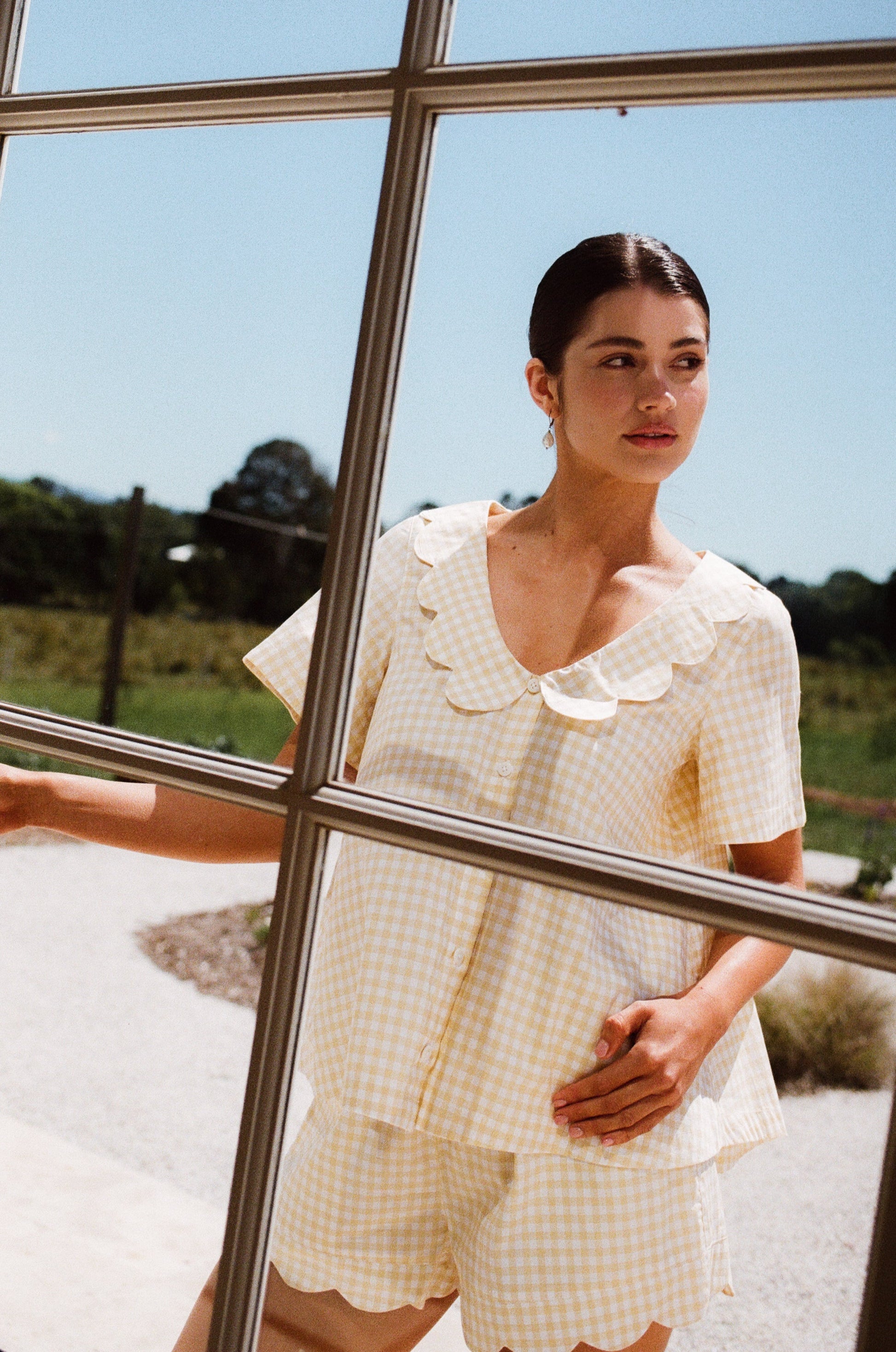 Penelope Sleep Set - Cotton - Gingham Yellow