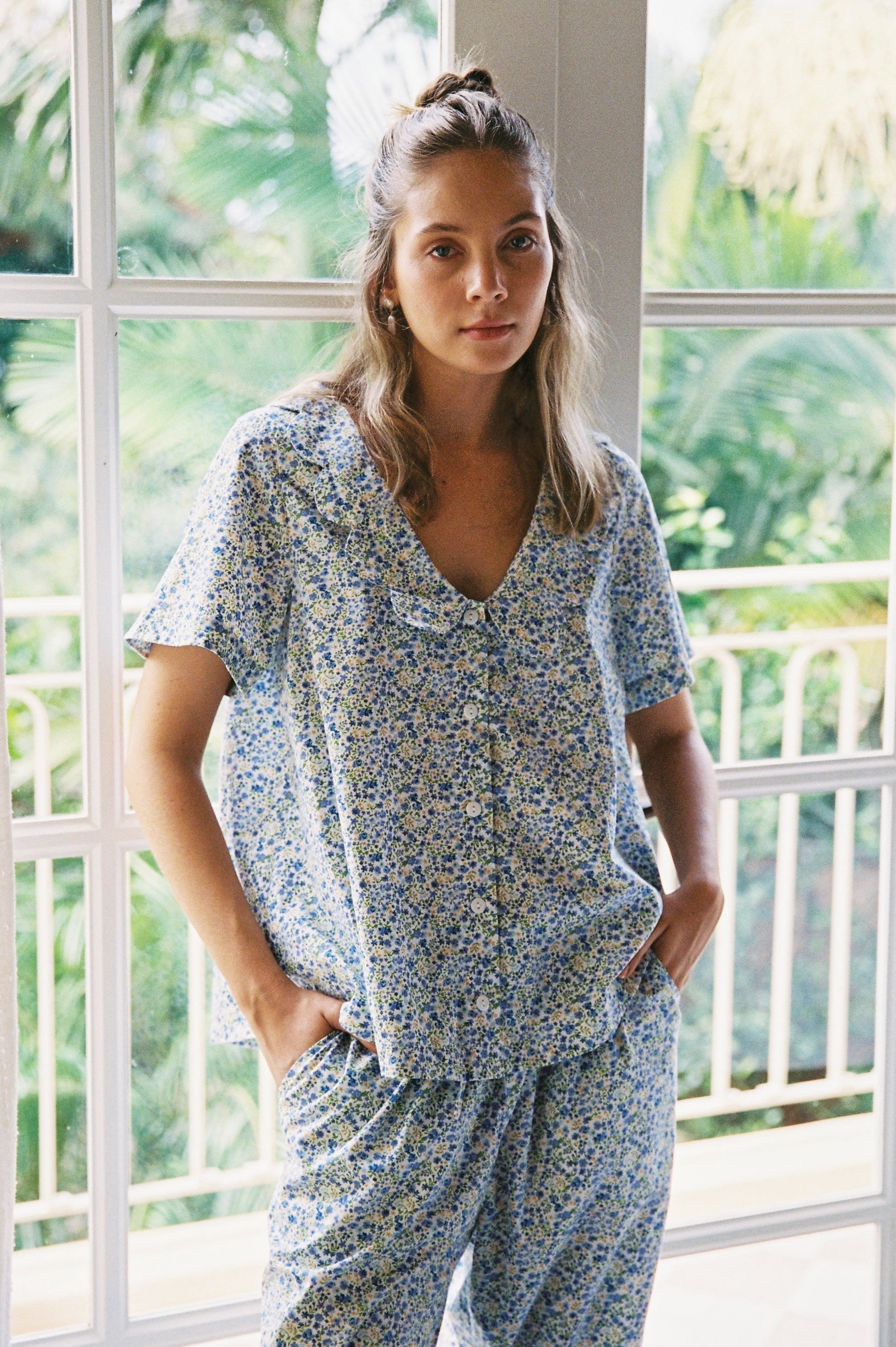 Penelope Sleep Set - Pants - Cotton - Floret Blue