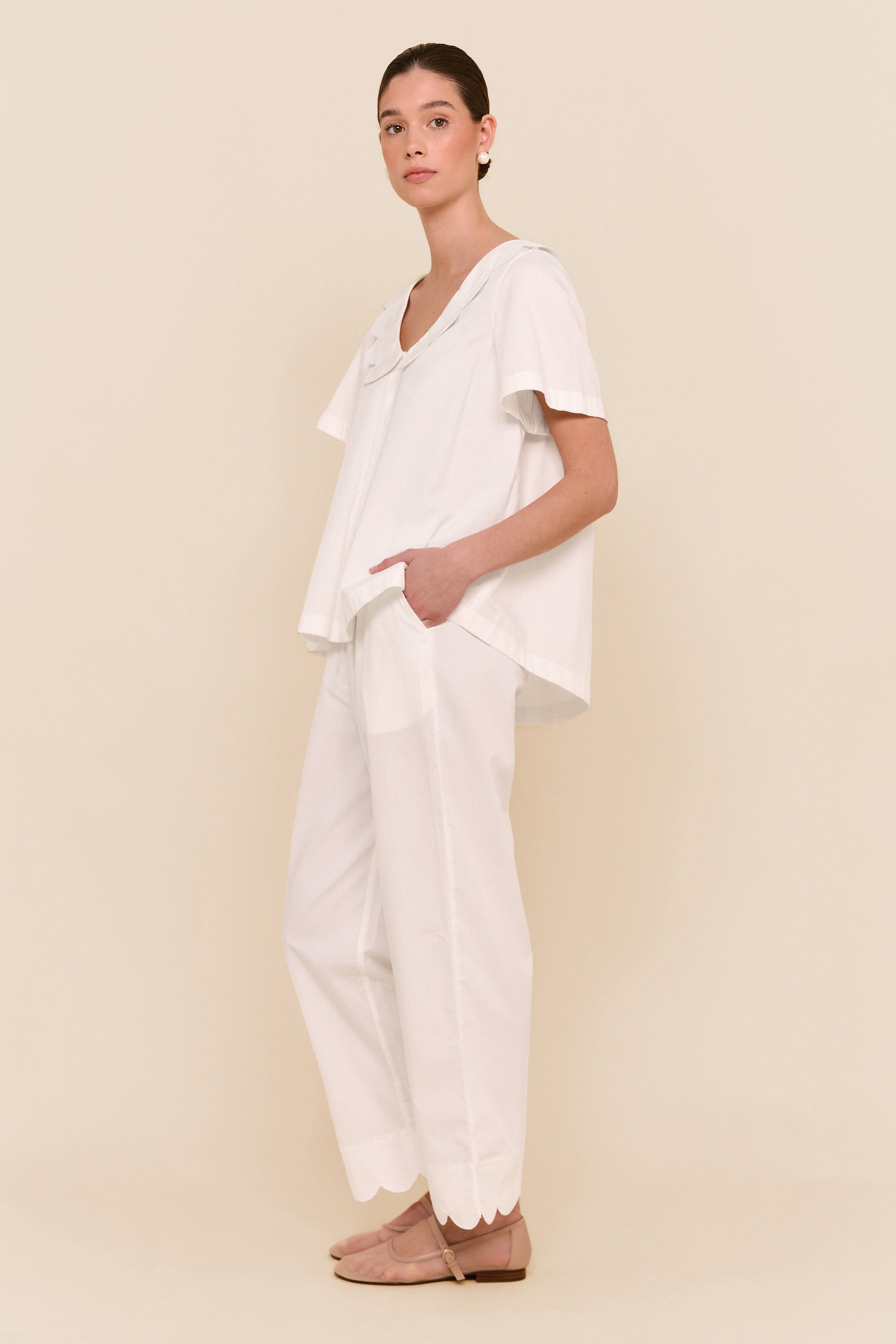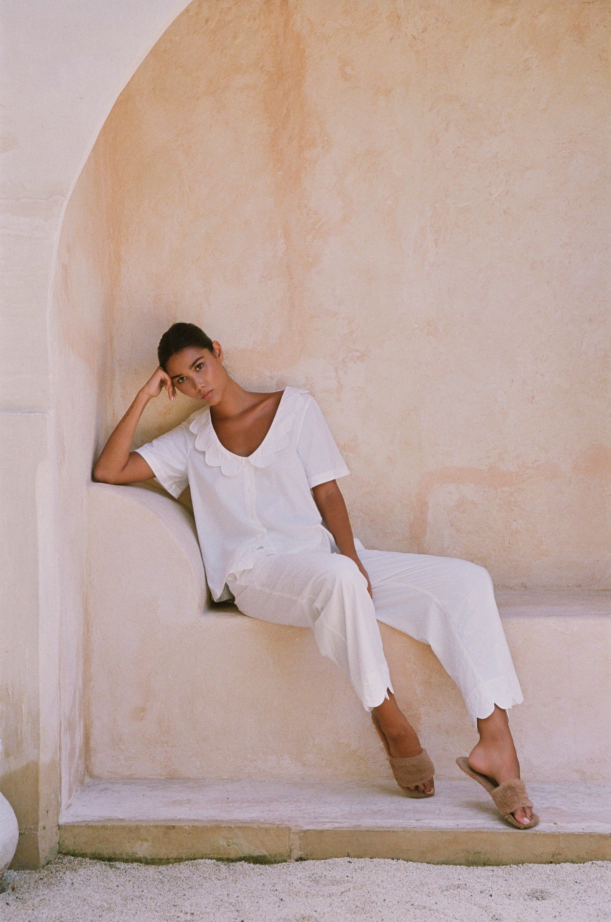 Our charming Penelope Set is perfect for lounging around the house, and looking chic while doing so. Crafted from a buttery soft cotton modal, and adorned with a Peter-Pan scalloped collar, this timeless ensemble will become a favourite.