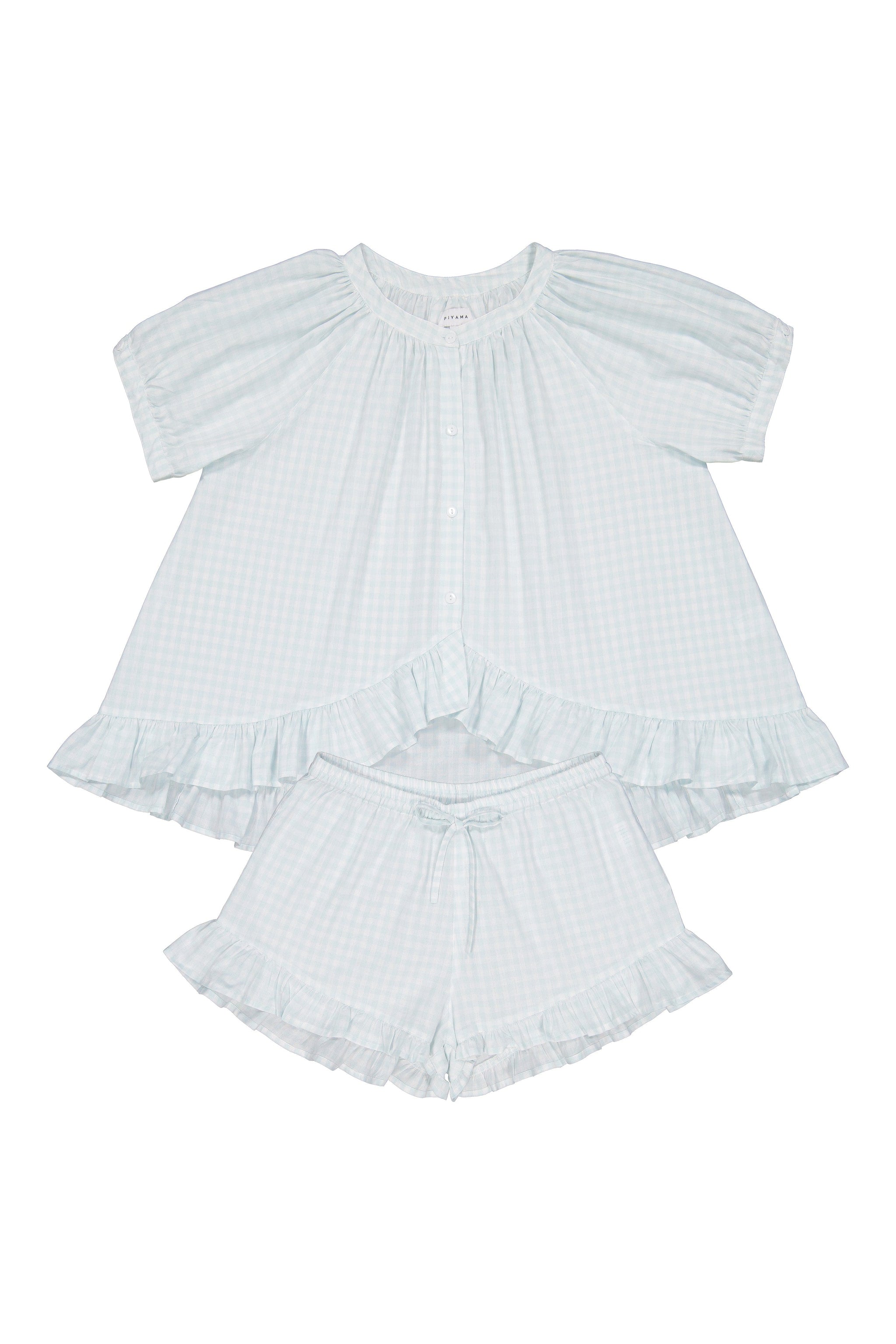 Sophie Sleep Set - Cotton - Gingham Pale Blue