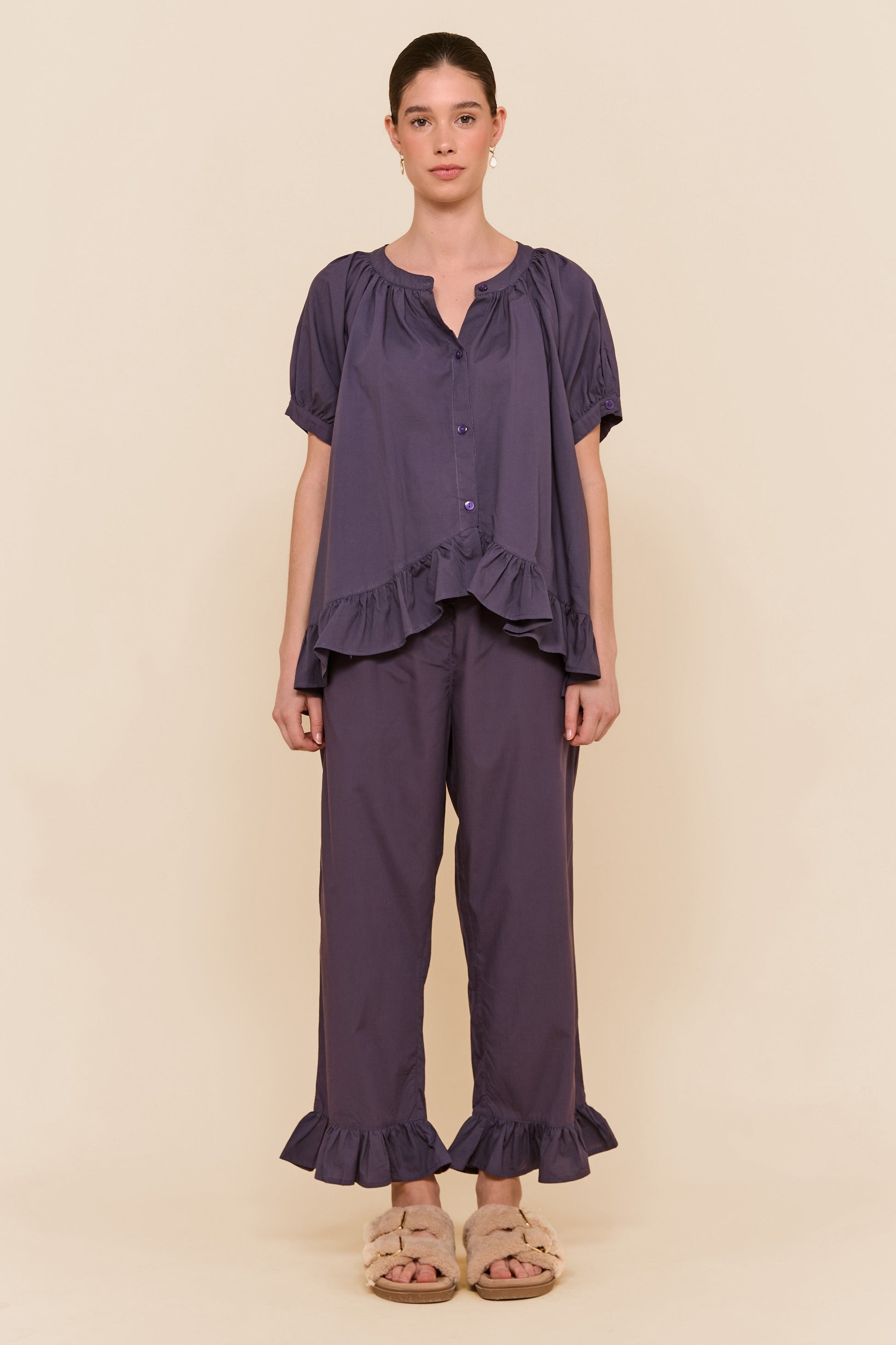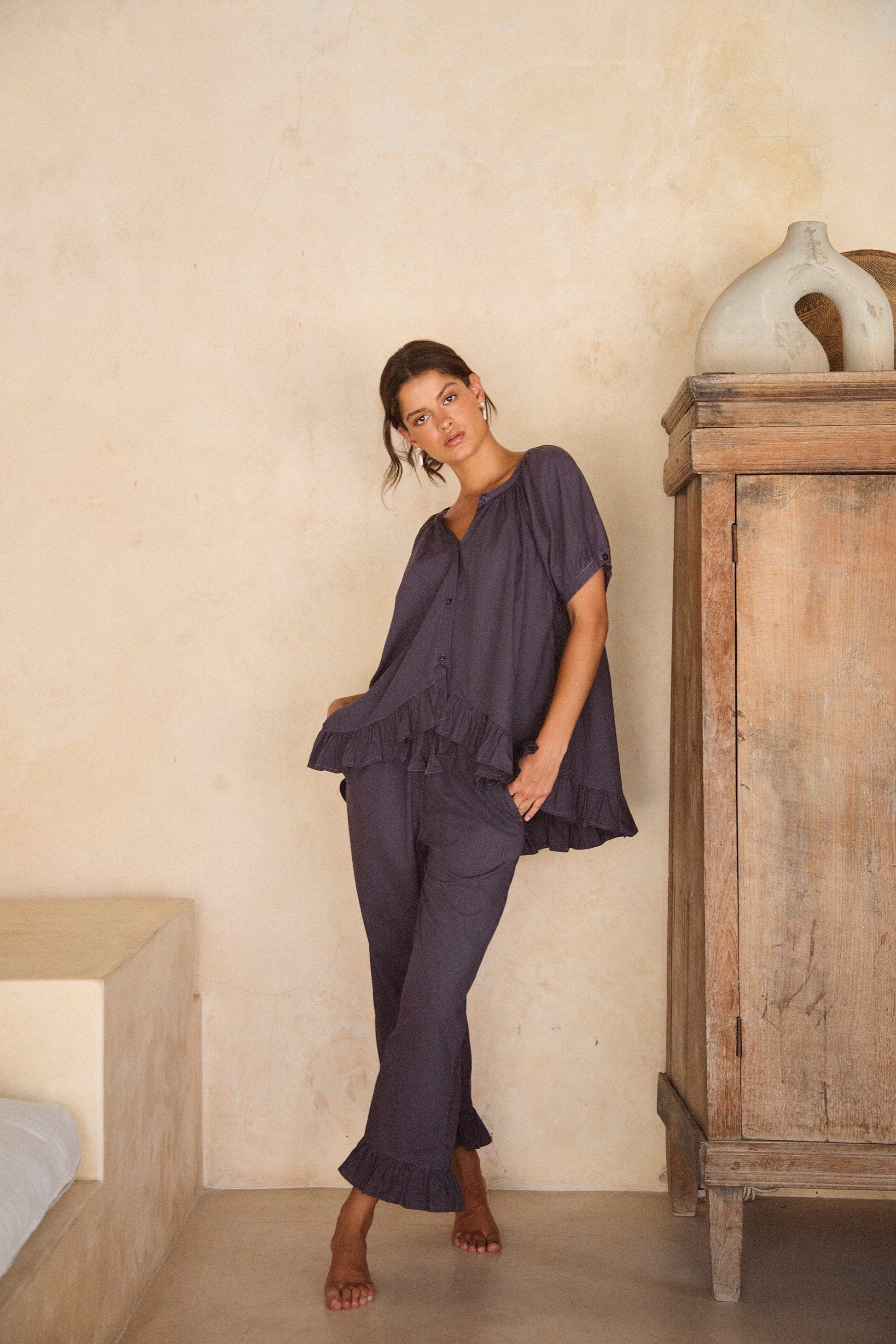 Ruffles galore, our Sophie Pyjama Set brings effortless glamour to your downtime. Cut in a breathable, buttery soft Cotton TENCEL™ Modal mix fabric. You will feel the difference.