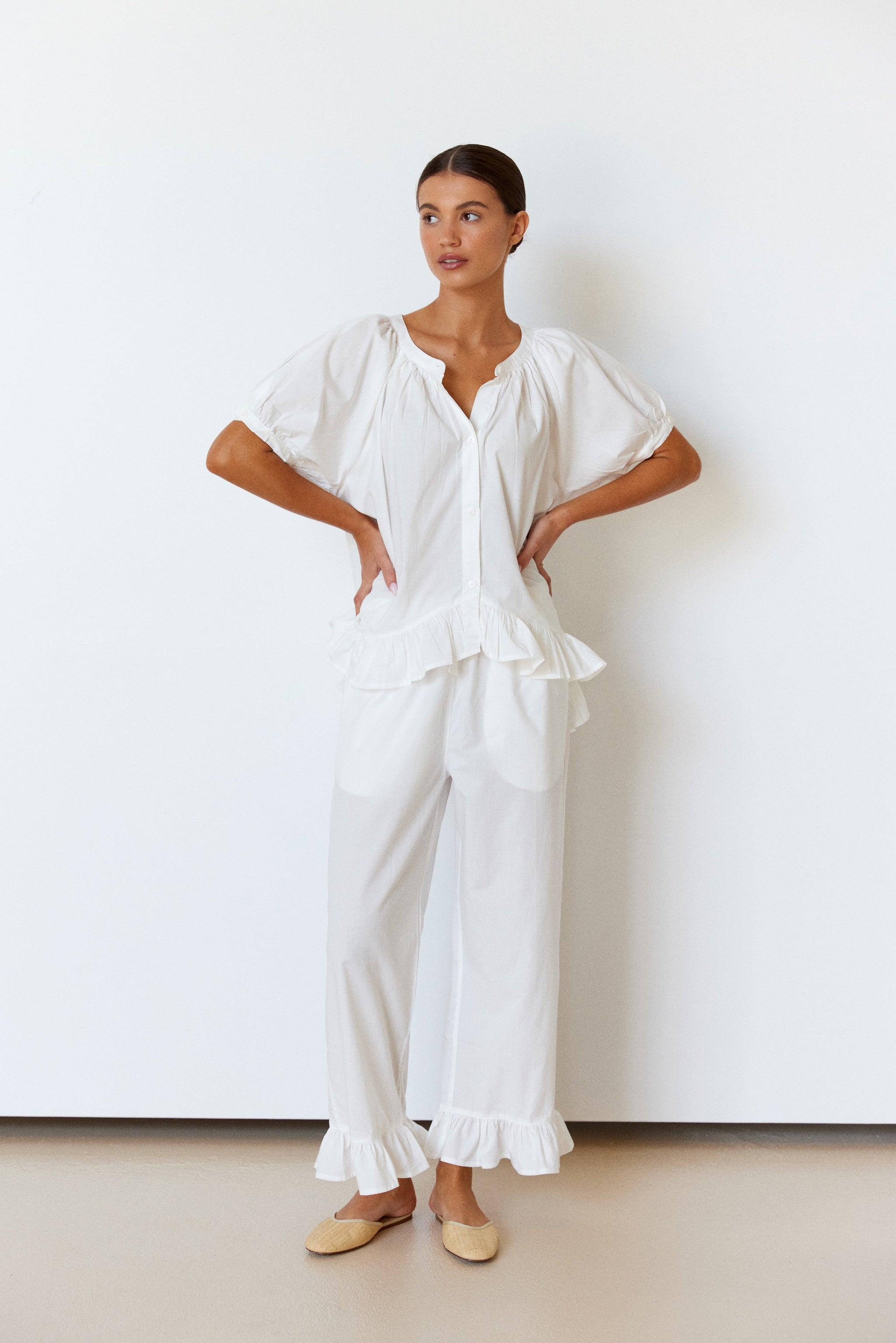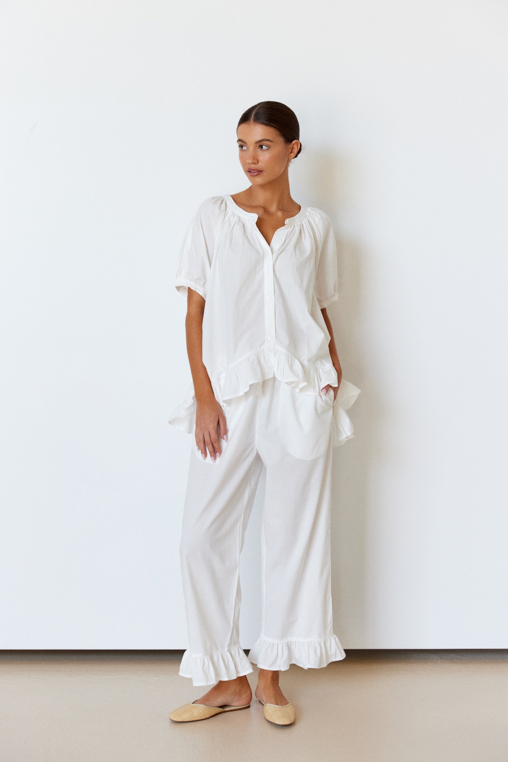 Ruffles galore, our Sophie Pyjama Set is relaxed glamour at its finest. Cut in a buttery soft Cotton & LENZING™ Modal blended fabric. Known for its superior softness & durability, you will feel the difference.