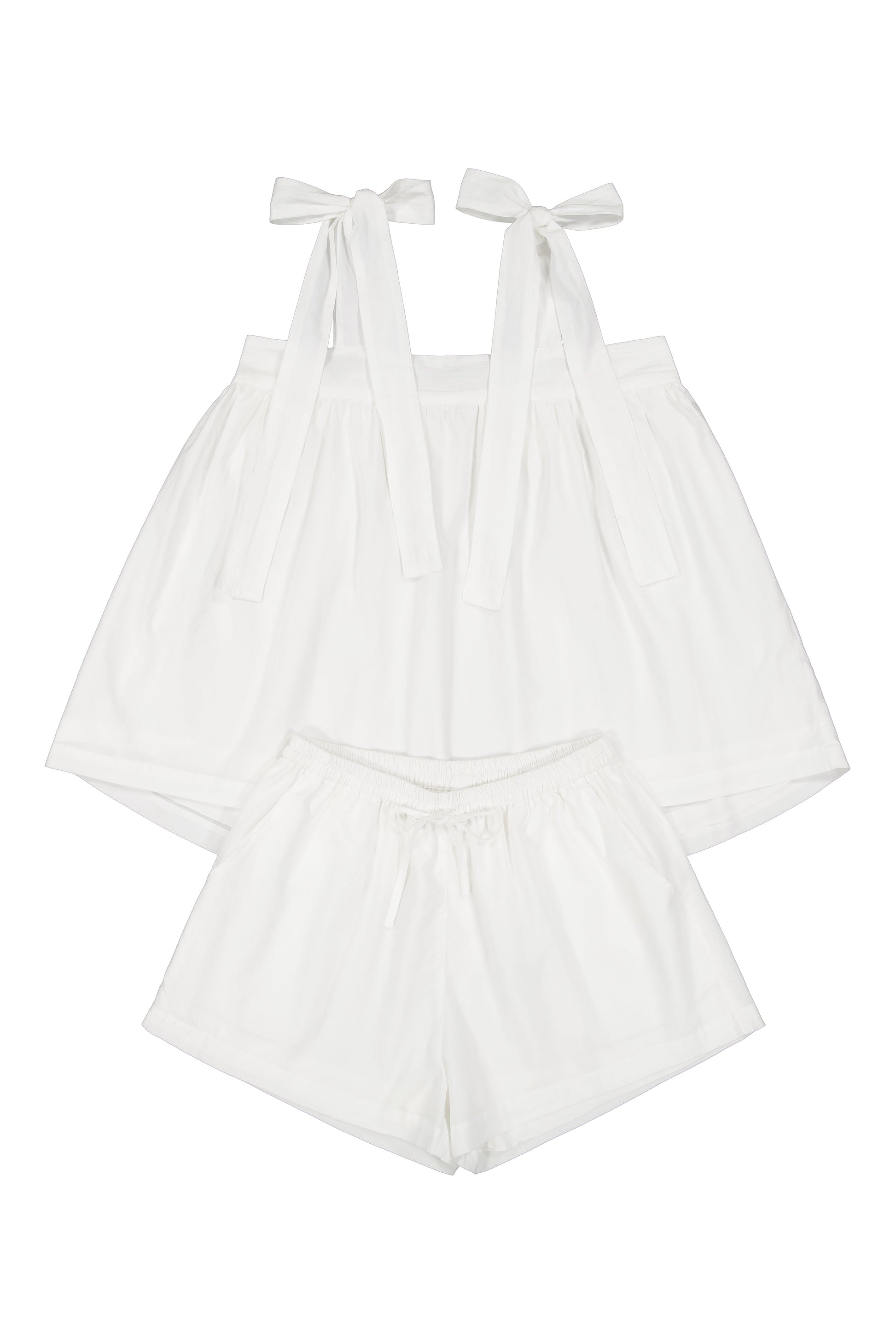 Our Suzie Tie Sleep Set is a glamorous ensemble featuring adjustable shoulder ties and super soft 100% Washed Cotton.